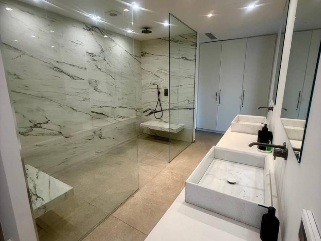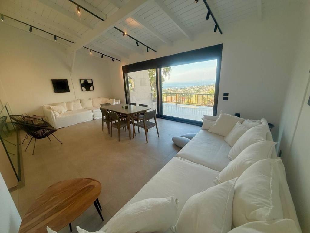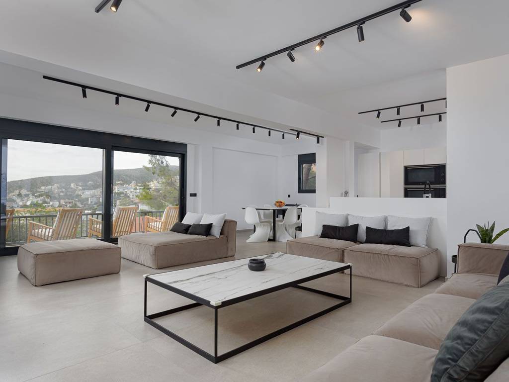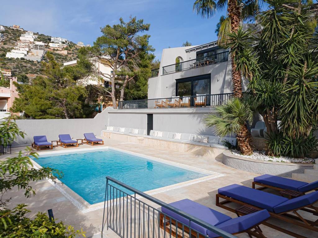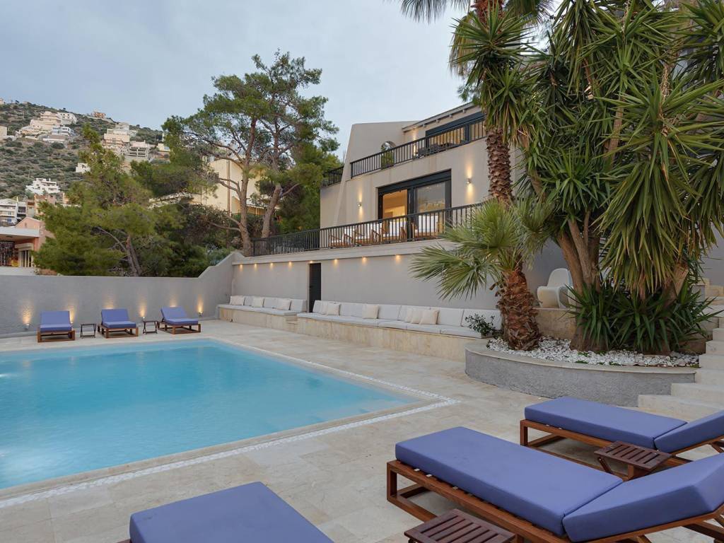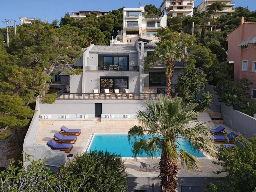In a 850sqm plot, step into your minimalist, luxury-infused 300sqm villa with 100sqm additional space and melt your tensions away. Five bedrooms, six bathrooms with elegant, minimalistic fixtures,two living spaces, and a fully equipped kitchen. It is complemented by its own private pool – the perfect spot to gather, unwind and reconnect. The beach is only a mere minute walk away. Upon entering the villa’s light-filled top floor you will encounter the first (of two) open space living areas .The living area leads out onto a spectacular terrace, where Saronic Gulf views abound; where deck chairs are perfectly positioned for front-seat sunset shows. The uber-sleek, all-white kitchen (expertly fitted with state-of-the-art appliances) will be a space for gathering and cooking up med-inspired delicacies. From here (the ground floor), you will walk down to the pool area where you’ll be soaking up Mediterranean rays by day and star-gazing in lounge chairs by night. This villa is located in the suburb of Saronida – part of the strip of coastal paradise that frames the Attica region. P.S There is remaining buildable area on this plot that can be utilized at your discretion. Nearest beach 2km Bakery / Pastry-Shop / Mini-Market / Delicatessen 1,5km Super-Market Stores 1.100m Athens International Airport 25km Piraeus port 40km Elleniko metro station 28km