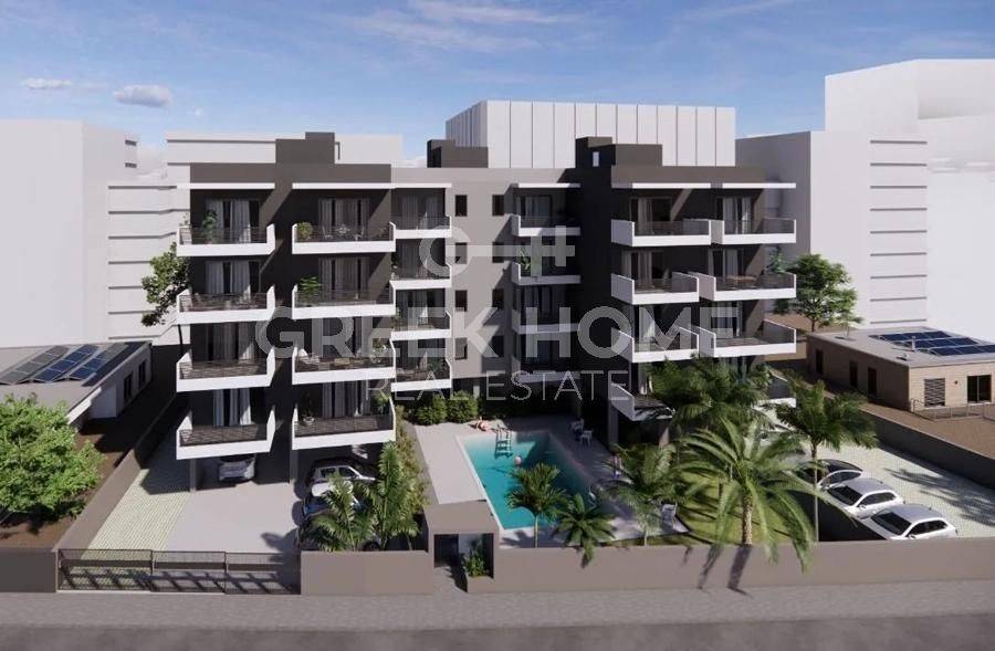 Peristeri, Agios Antonios - Apartment 80sqm bedrooms 2, 2nd, newly built, year built 2025, energy class A, living room, kitchen, bathroom, wc, heating type: autonomous (natural gas), parking ground floor, quiet, dual aspect apartment, luminous, unobstructed view, frontage, painted, electric roller shutters, storage space 12sqm, solar heater, external thermal insulation, balconies, large balconies, balcony 25sqm, elevator, aluminum frames, double glazed windows, door screen, ceramic tiles floors, separate kitchen, secure door, video doorbell, swimming pool, pets allowed, eastern orientation, close to school (up to 500m), close to super market (up to 100m), close to entertainment (up to 500m), close to square (up to 100m), close to metro/train (up to 100m), close to park (up to 100m), close to national road (up to 1500m).