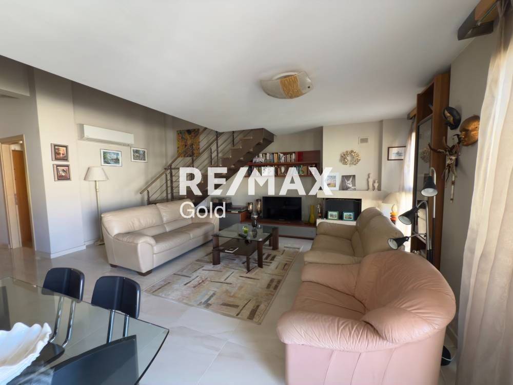Property Code: #21107-17058 | Amazing two-level maisonette for sale, 164 sq.m. of which 15 sq.m. is a warehouse in the basement and 10 sq.m. closed parking space. It is located on the third floor of a 2011 building in the Pylaia extension. On the first level we find a bright, spacious living room, a separate kitchen, 2 bedrooms and 1 bathroom. On the second level we go up with an internal staircase to the attic, which consists of a master bedroom. The property has verandas on the front and rear, synthetic frames of excellent aesthetics, autonomous natural gas heating, pre-installation of a solar water heater and alarm, built-in electrical kitchen appliances, awnings, screens and a semi-energy fireplace. The apartment is bright, airy and very neat. The property has in the common area of the building a green space with a gazebo, for planning events. It has direct access to transport and ring road, schools and is located in a quiet area with views and openness. This is a property of high aesthetics which is worth seeing up close. Price negotiable! REMAX GOLD In order to indicate the properties, it is necessary to present the police identity card or the VAT number. www.remax-gold.gr Contact Details: Center: 2310913913, Egnatia 62, Center 546 24 Evosmos: 2310670590, Smyrnis 15, Evosmos 562 24