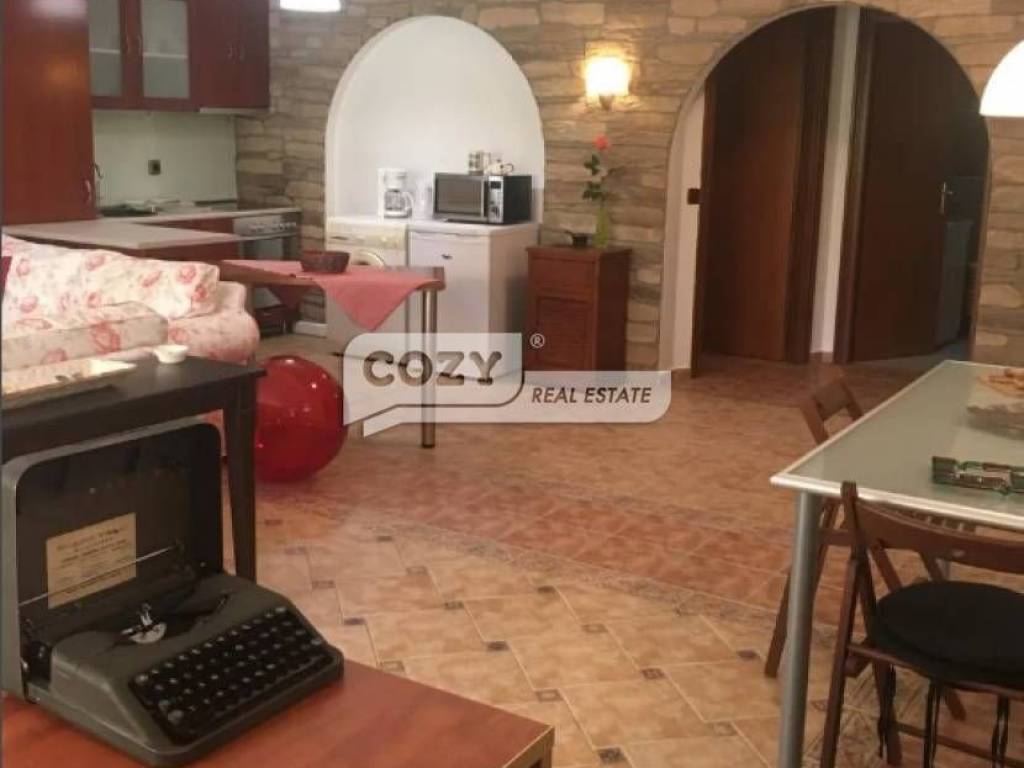 A fully furnished and fully equipped 75 sq.m. ground floor apartment is available for rent in the center of Panorama, on a quiet street, just 3 minutes from the main square.