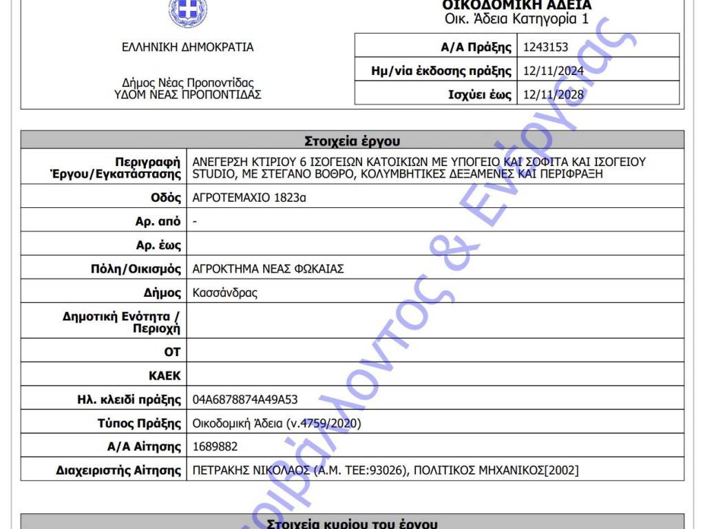 For sale is a building plot with a permit for 6 maisonettes with a soffit and a swimming pool in front of each maisonette. The plot is located in the Sani area and is 5 minutes from the beach. It has asphalt access and is ready for construction. For more information, please call.