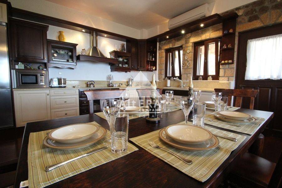 Villa of 180 sq.m. for sale in Aegina in Sfentouri. It has an open space where it can sleep 4 people. It has a living-dining room, kitchen, 2 bathrooms and 2 kitchens. It has a garden and sea view and is located in a 2-acre plot. It has 4 open parking spaces, a barbecue, a very beautiful chapel and a swimming pool. It is fully equipped. It has autonomous heating, oil and a boiler for hot water. The frames are aluminum. €1,000,000