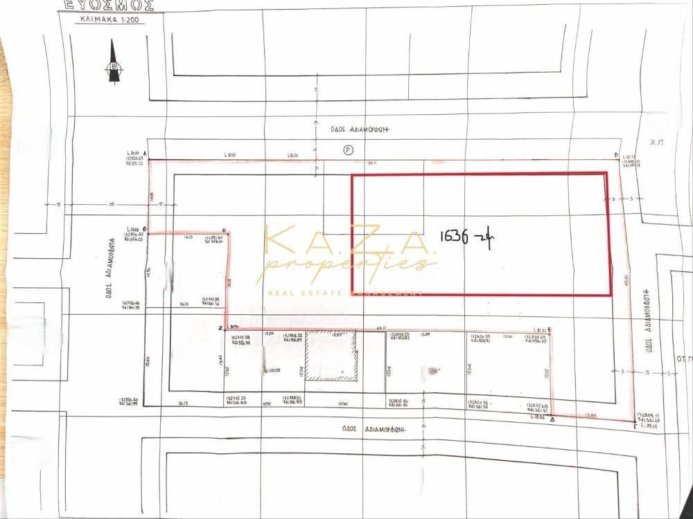 ID: #19-450 - Thessaloniki, Euosmos: FOR SALE plane plot 1636sqm facade with a Coefficient Building of 0.8, Buildable area 1309sqm and can build up to 1309sqm. Its zoning is residential. The asking price is 650.000€.