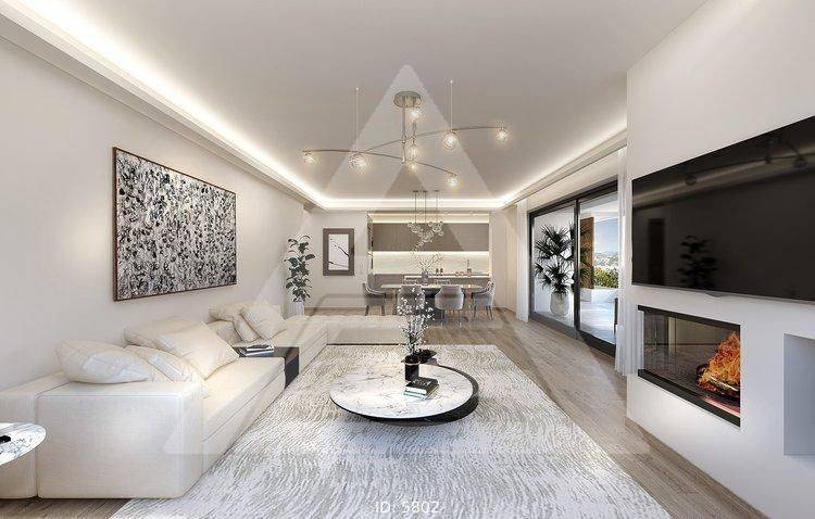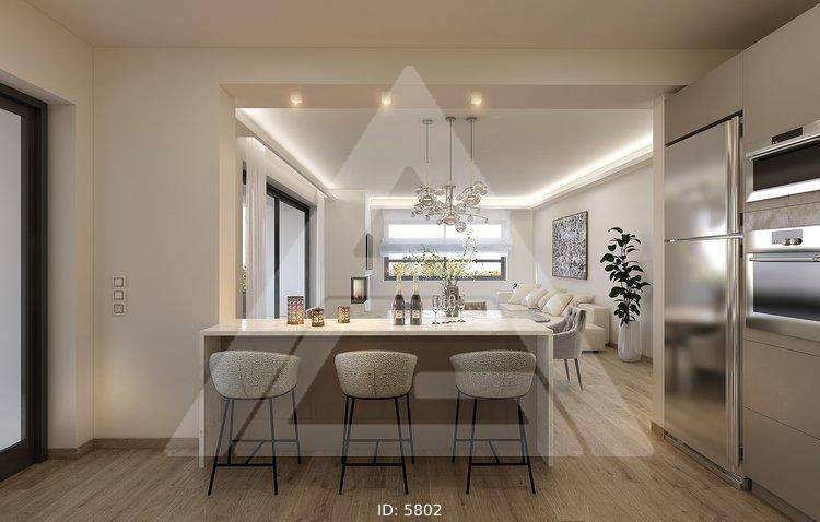 Halandri, Polydroso - Apartment 128sqm bedrooms 3, levels 1, 1st, under construction, energy class A++, living room, kitchen, semi-outdoor space, 3 bathrooms, heating type: individual unit (natural gas), air condition, parking, quiet, dual aspect apartment, luminous, corner, unobstructed view, frontage, painted, storage space, solar heater, external thermal insulation, fireplace, balconies, large balconies, tents, elevator, garden, aluminum frames, double glazed windows, door screen, wood floors, three phase electricity, night electricity discount rate, secure door, alarm, surveillance cameras, luxurious, under floor heating, smart home, cloakroom, ev charger, satellite, internet, pets allowed, within city plan, residential zone, access from asphalt.