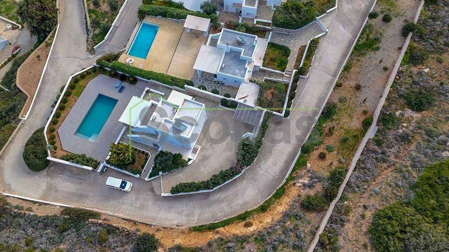 VIlla for sale by SCOPAS REAL ESTATE and CONSTRUCTION. 155 sq.m. villa in Tsiropoula (Ysterní), Paros, built on a 2,375 sq.m. plot in authentic Cycladic style, featuring a newly built 45 sq.m. seawater pool (2021). The villa is located at the corner of a complex of seven independent villas, offering complete privacy and 180° panoramic views of surrounding islands — Naxos, Schinoussa, Iraklia, Mykonos, and Ios. The villa spans three levels and includes 4 bedrooms and 3 bathrooms. The ground floor comprises a living room, kitchen, bedroom, and bathroom, while an independent guesthouse offers a private entrance, master bedroom (king-size and single bed), and private bathroom. Outdoor amenities include: 45 sq.m. seawater pool Garden and 250 sq.m. surrounding space Private parking Pergola with dining area for 10 people 40 sq.m. BBQ area Semi-covered outdoor shower The villa is fully furnished and equipped, featuring heating and cooling systems, and is meticulously maintained annually, ensuring excellent condition. Ideal for permanent residence or investment, with tourism potential, combining Cycladic architecture, luxury, and breathtaking views. About the Ysterní Area: Ysterní is located in the northeastern part of Paros, in a quiet and peaceful area, ideal for luxury residences and holiday villas. The area offers beautiful views of the Aegean Sea and surrounding islands, with privacy and seclusion, yet easy access to infrastructure, beaches, and services. The villa is east-facing, taking advantage of natural daylight while providing protection from northern winds. Area Details: Year built: 2008 Distance from the beach: 3.5 km Distance from the airport: 21 km Distance from the port: 108.8 km Access: Paved road The information and characteristics of the properties have been entered based on data provided by the principal. - The point on the map does not correspond to the actual address of the property. - When indicating the property, an identity card or VAT number is necessary, as per Law N.4072/2012 - Official Gazette 86/A/11-4-2012.