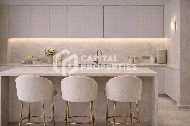 opening onto a generous balcony, a refined open-plan kitchen, two bedrooms,