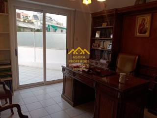 Ilisia, Hilton: For sale fully renovated in 2023, bright corner penthouse on the top floor Office 72 sq.m. facade on the 5th floor with elevator with central gas heating. It consists of 4 rooms, 1 kitchen, internal storage (loft) and bathroom. It is fully furnished, equipped, decorated, large verandas, with electrical appliances (refrigerator), peephole, built in 1980, granite tile floors, painted, close to central market, transportation, METRO, Gas station and has an open view, aluminum frames with double glazing, security door, 2 air conditioners, energy class C, granite floors, night power, electric water heater.. Price 250.000€ | Property Code: #2102. tel. 6970085588.