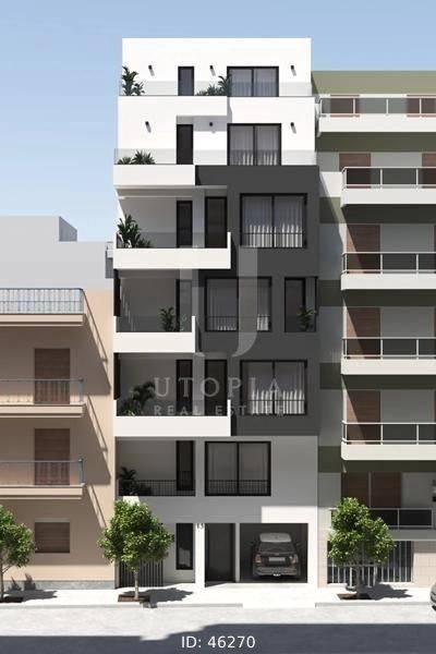 Piraeus, Agia Sofia - Apartment 61sqm unfurnished, bedrooms 2, levels 1, 4th, under construction, year built 2025, energy class A+, living room, hall, kitchen, bathroom, heating type: autonomous (fan coil), air condition, quiet, dual aspect apartment, luminous, unobstructed view view, frontage, balconies, tents, elevator, aluminum frames, double glazed windows, ceramic tiles floors, secure door, alarm, residential zone, access from asphalt, close to market (up to 500m), close to metro/train (up to 1000m).