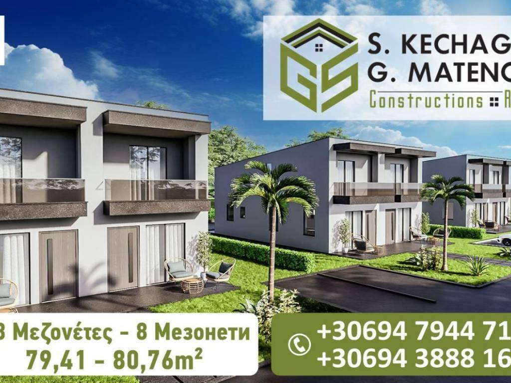 GS Real Estate The "SEA VIEW" complex in Asprovalta, Thessaloniki, features 8 unique detached houses (maisonettes) ranging from 79.41 to 80.76 sq.m. The houses offer a bright living room, modern kitchen, and a bedroom and bathroom on the ground floor, with two additional bedrooms, a bathroom, and balconies with sea views on the first floor. Construction is expected to be completed by the end of 2027. More information is available on the gsrealestate.gr website.