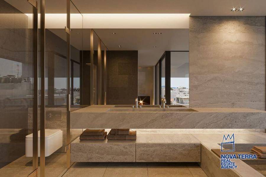GLYFADA (Golf Area), Luxury 145 sq.m. Whole-Floor Apartment, 3rd Floor Description: Available for rent: A stunning, newly built (2022) whole-floor apartment featuring minimal architectural design. Located in the prestigious Golf area of Glyfada, this corner apartment is airy, light-filled, and offers premium living standards. Key Features: Layout: 2 Master Bedrooms, spacious living room with fireplace, modern kitchen, main bathroom, and guest WC. Heating/Cooling: Autonomous oil heating with underfloor system. Premium Finishes: Oak wood flooring throughout, aluminum frames with double glazing, insect screens, and electric shutters. Amenities: Security door, storage room, large verandas, satellite dish, and private garage parking. Energy Efficiency: Class A. A luxurious residence in a quiet residential zone, perfect for a high-end lifestyle or as a holiday home. Pet friendly., Energy class: A, property ID: 46344, www.nova-terra.gr