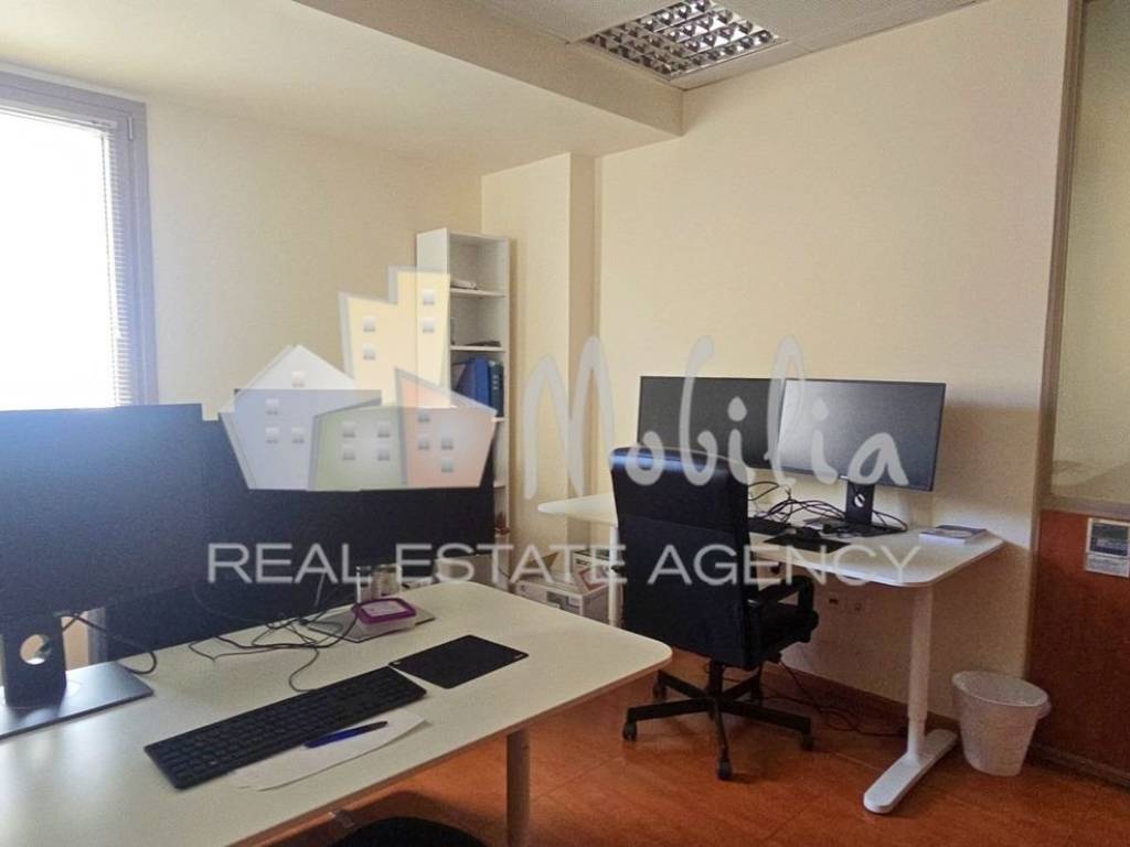 In the area of Ampelokipoi – Pentagon – Panormou, a modern, high-specification office space is available for rent, located on the 3rd floor of a prominent commercial building, with a total surface area of 165 sq.m. The property is situated on a main avenue with direct access to the “Panormou” Metro station and is also close to additional public transportation options, supermarkets, the Panormou shopping area, as well as numerous restaurants and entertainment venues. It combines excellent visibility with everyday operational convenience for a business. The property is approximately 28 kilometers from the airport, with an estimated driving time of around 30 minutes. The office was constructed in 2007 and is configured as a corner, front-facing floor apartment, offering a sense of autonomy and prestige. It is particularly bright, well-ventilated, and sunlit, featuring a through-layout and a north-eastern orientation. The space enjoys open views and unobstructed vistas toward the mountain and the urban landscape, creating a pleasant and functional working environment. The internal layout comprises five distinct rooms, two bathrooms, one WC, and one kitchen, fully meeting the requirements of a modern office or corporate headquarters. Two underground parking spaces are also included, a significant advantage for the area. The space features autonomous electric heating, air conditioning, a boiler, and three-phase power. Aluminum window frames with double glazing and laminate flooring further enhance comfort and functionality. The energy performance certificate is rated Class C. The office is in very good condition and is fully equipped with modern infrastructure, including structured cabling, racks and patch panels, a suspended ceiling, a security door, smoke detectors, an elevator, and insect screens. Accessibility for persons with disabilities is ensured via a large and comfortable elevator. Overall, the property conveys a sense of luxury and a modern aesthetic, making it ideal for businesses seeking a space with a strong professional profile. This is an excellent office option in a strategic location in Ampelokipoi, suitable for companies looking for visibility, immediate accessibility, and a modern, energy-independent working environment. Mobilia Real Estate - Contact Phone No.: +30 210 7563200, email: info@mobilia.gr, website: https://www.mobilia.gr