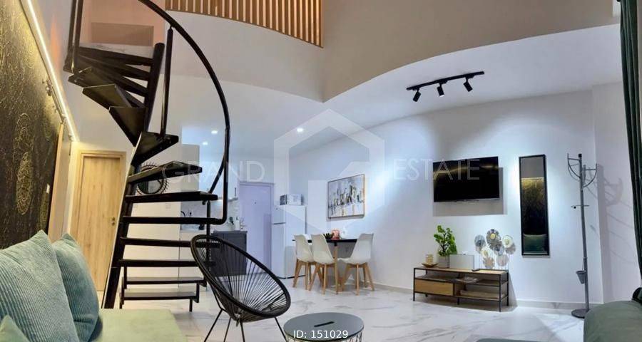 Neapoli (Thessaloniki - Western Suburbs), Troada - Loft 59sqm fully furnished, bedroom, ground floor, excellent condition, year built 2024, renovation year 2024, energy class C, kitchen, bathroom, heating type: autonomous (electricity), air condition, solar heater, garden, synthetic frames, double glazed windows, door screen, ceramic tiles floors, secure door, internal staircase, residential zone, eastern orientation, access from asphalt, close to university/college (up to 3000m), close to school (up to 100m), close to banks (up to 50m), close to sports facilities (up to 100m), close to bus stop (up to 50m), close to market (up to 50m), close to park (up to 50m), close to square (up to 100m), close to super market (up to 50m), close to entertainment (up to 100m).