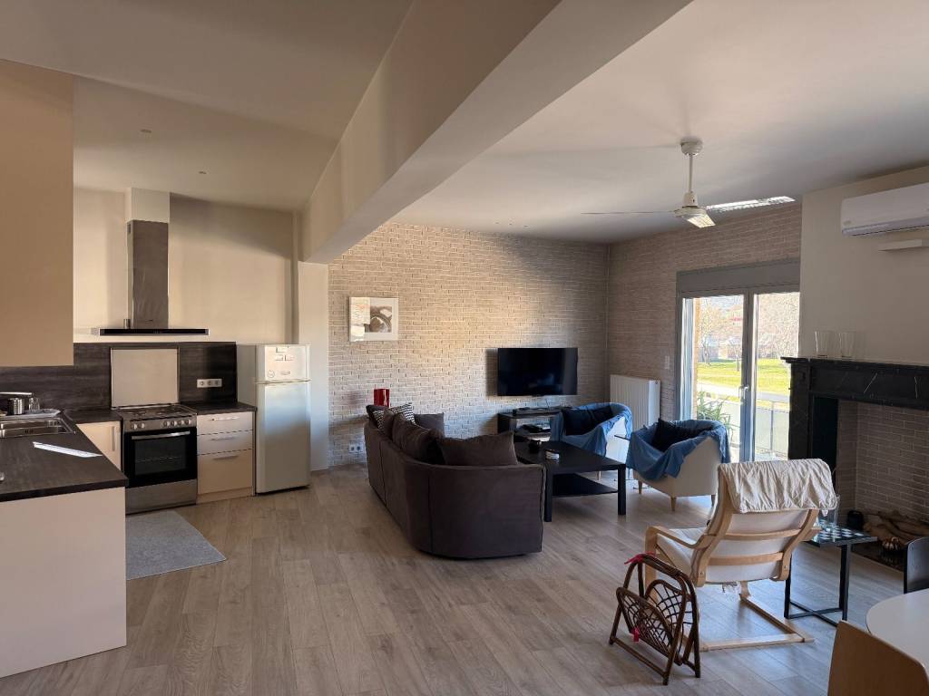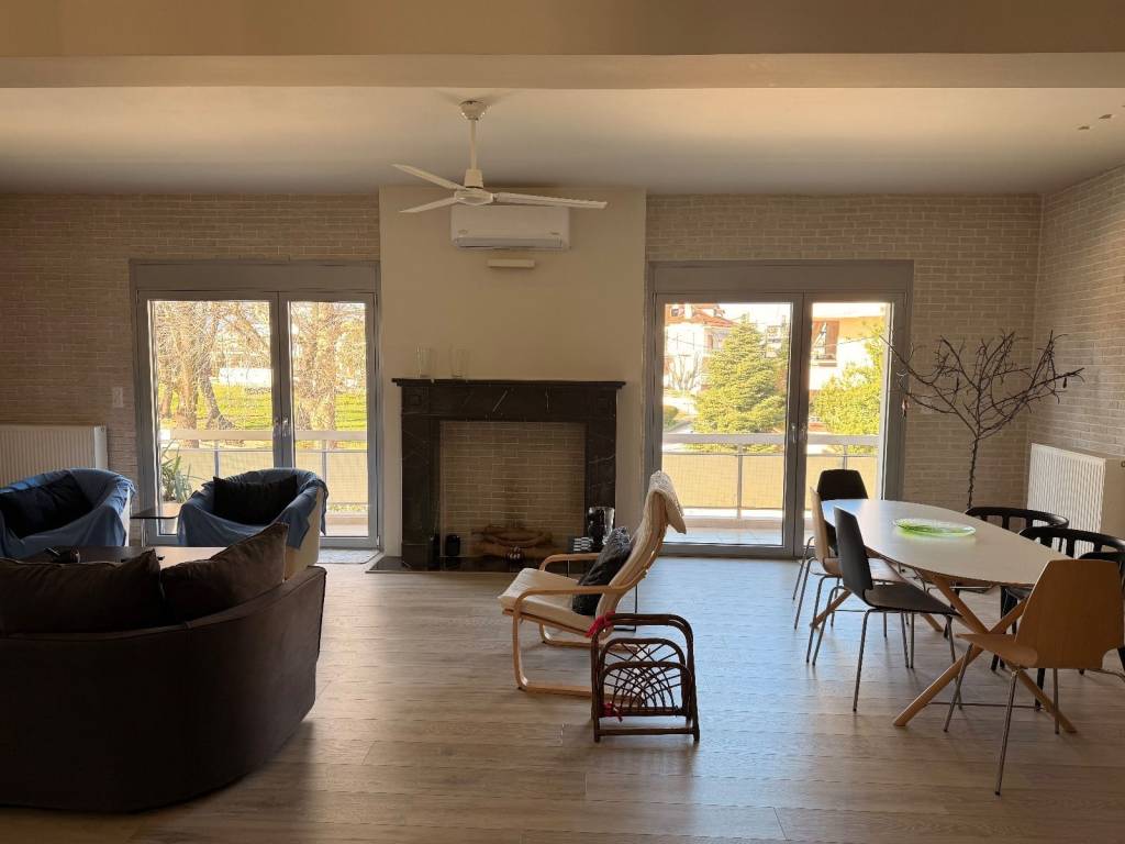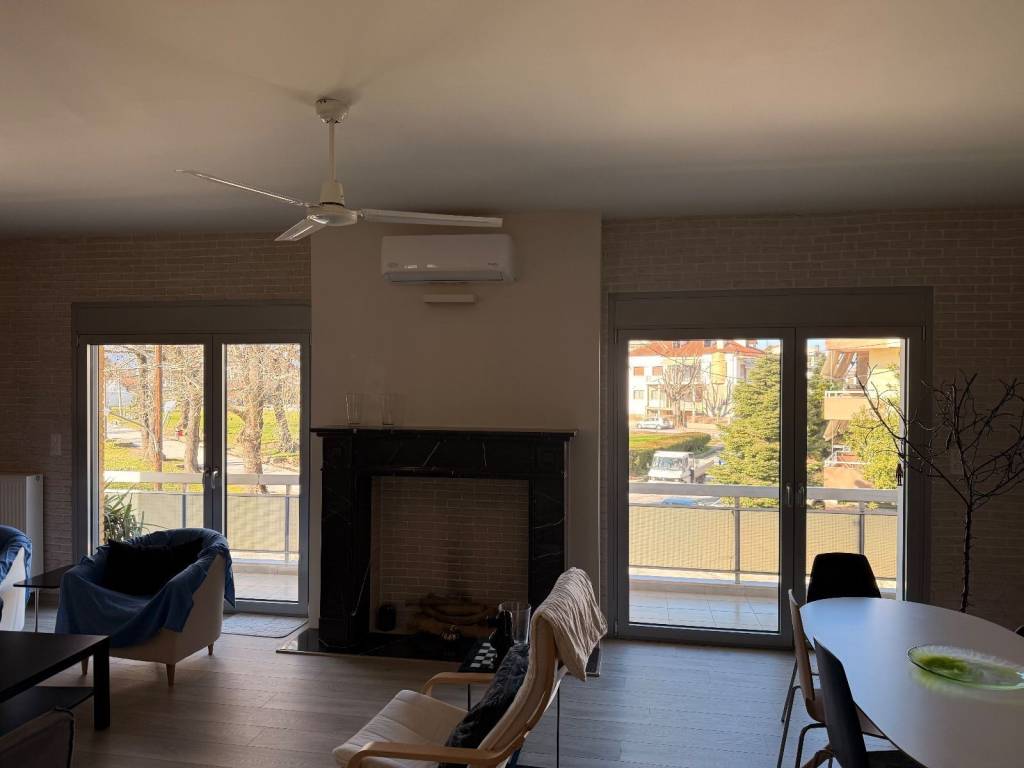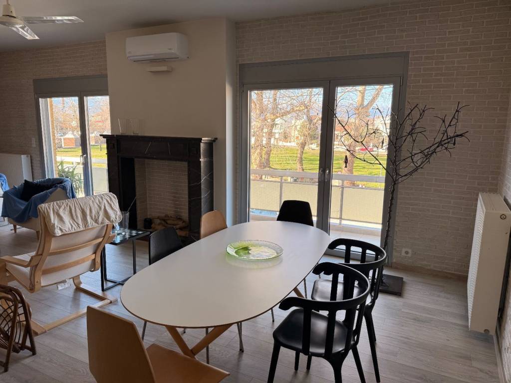 Ενοικιάζεται πολυτελές διαμέρισμα 100 τ.μ. περίπου, 1ου ορόφου (είναι ψηλά υπάρχει ημιόροφος), έχει ανακαινιστεί πλήρως πριν 5 χρόνια και επίσης είναι πλήρως επιπλωμένο και εξοπλισμένο. Εχει ένα ενιαίο μεγάλό χώρο με open κουζίνα καθιστικό κ τραπεζαρία, 2 υπνοδωμάτια, ευρύχωρο μπανίο και δωμάτιο για βεστιάριο ή χρήση αποθήκης., θέρμανση αυτόνομη Φ/Α, εκπληκτική θέα προς το πάρκο Ματσόπουλου, είναι πολύ φωτεινό κ διαμπερές.