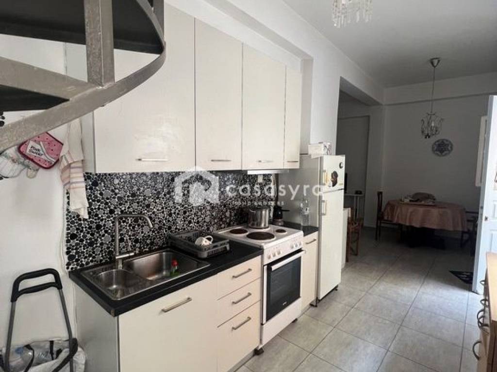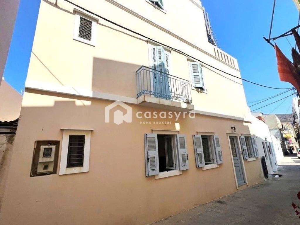 FOR SALE fully renovated detached house with a total area of 86.05 sq.m. on a 41 sq.m. plot in the "Pefkakia" area in Ermoupoli, Syros. The property is developed on three levels and consists of a living room, kitchen and bathroom on the ground floor and a bedroom with a bathroom on each of the upper floors. It is furnished and equipped with electrical appliances and is recommended as an investment due to its location and its outdoor areas.