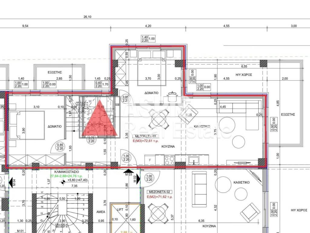 For sale is a newly built maisonette on the 2nd-3rd floor, 122 sq m, with 3 bedrooms, living room, kitchen, 2 bathrooms, 2 parking spaces and a 40 sq m storage room. It has excellent thermal insulation, synthetic energy-saving glazing, individual natural gas underfloor heating and solar water heater, alarm and air conditioning infrastructure. It is located in a very good location, in the Thermi area.