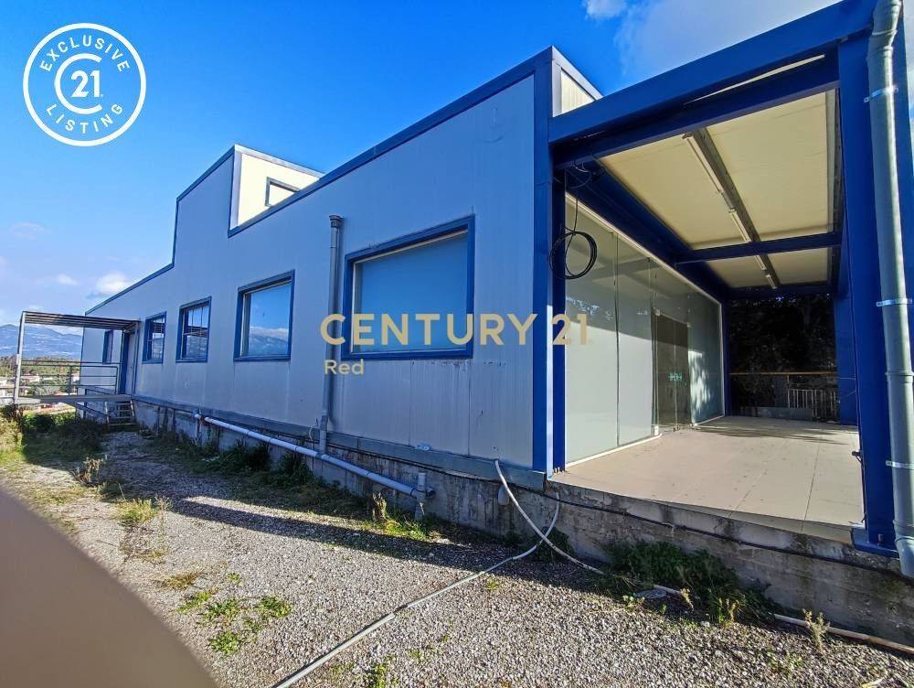 For sale: A commercial building of 472 sq.m. on a plot of 1055 sq.m., built on two levels. The ground floor is 100 sq.m. with a height of 3.15 meters, constructed from concrete. The first floor is 372 sq.m. with a height of 3.70 meters, and it is at ground level due to the terrain's morphology. It features a robust steel structure (with HTA-type iron), paneling, and a concrete base. The first floor (ground level) includes a reception area of 50 sq.m., offices of 40 sq.m., and two restrooms made of drywall and tiled floors, with ready electrical and plumbing installations. The main hall of 270 sq.m. is open without columns, with a concrete floor and large windows around the perimeter for adequate natural lighting. It has three-phase power with ready electrical installation. There is a staircase connecting the two floors and provision for an elevator. The 680 sq.m. of uncovered plot offers ample space for loading/unloading or parking. Located in a prime location in Arachovitika, Patras, it has access from the provincial road of Patras-Aigio and is adjacent at the back to the train station under construction. This is a prime property for any use such as a supermarket, warehouse, workshop, industry or office space. The property is recommended as an investment. Price: €300,000 | Property Code: #21001-13949