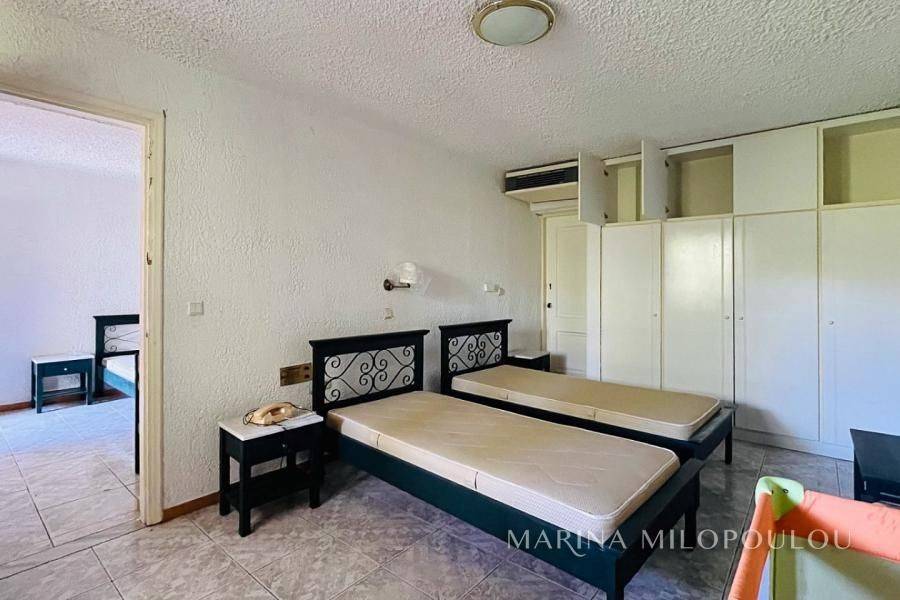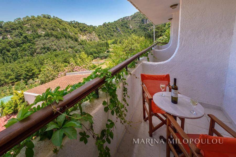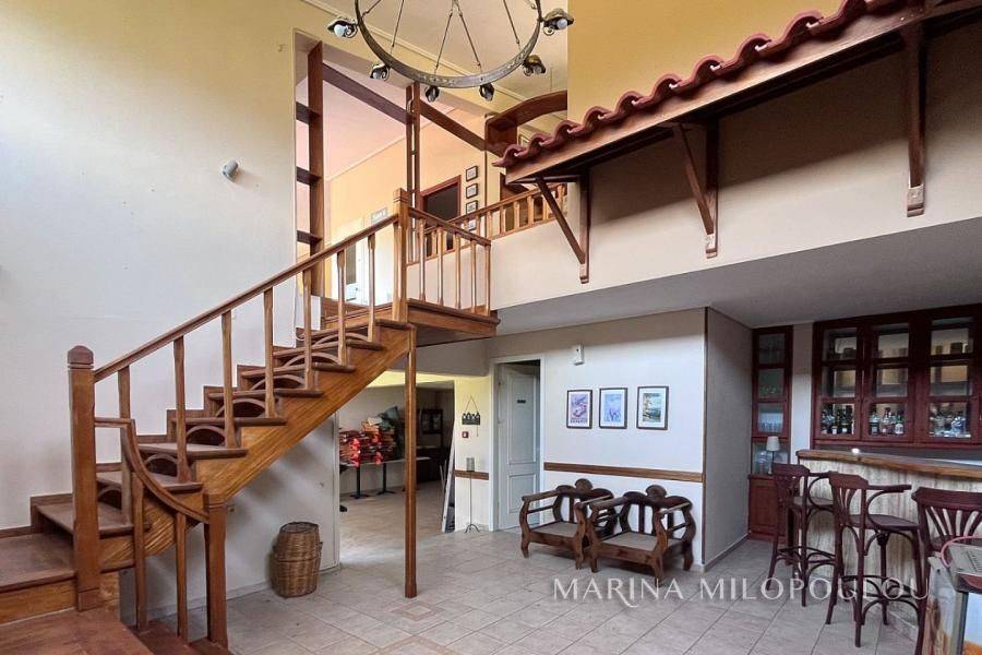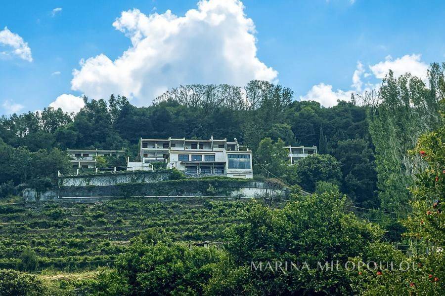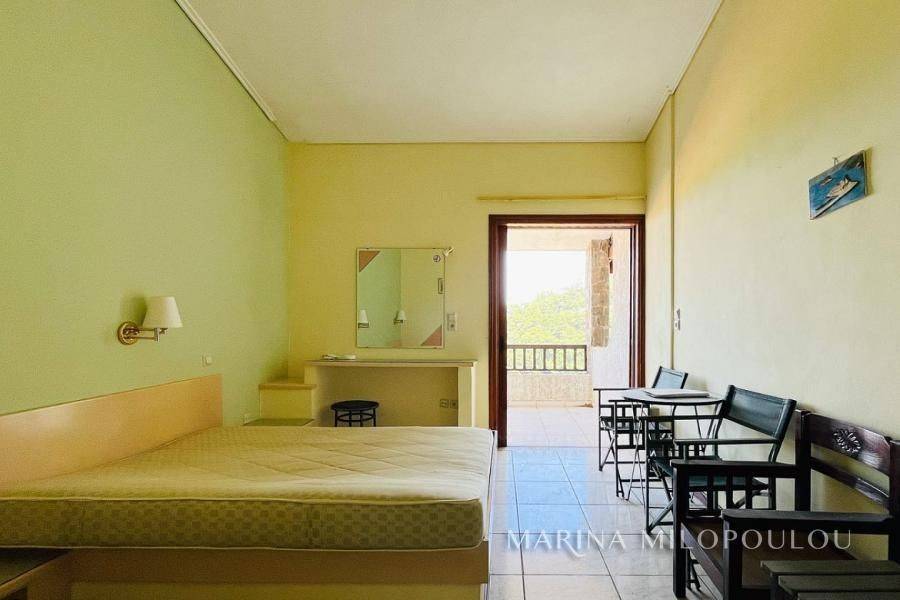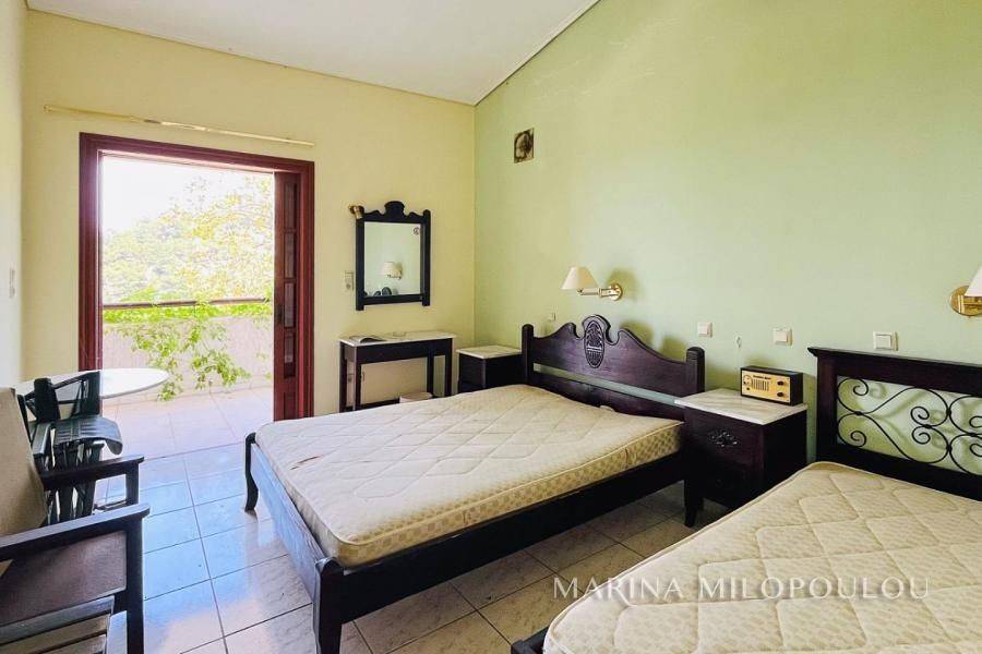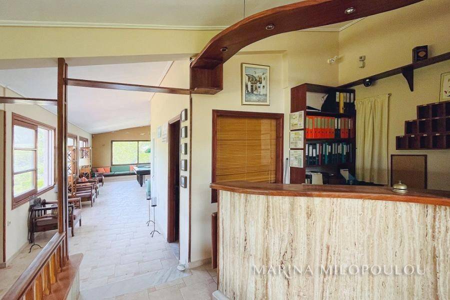 Samos island– Agios Konstantinos (Platanakia area), on this beautiful island of the North Aegean, renowned for its lush natural landscape and crystal-clear seas, a hotel property is offered within a plot of approximately 6,800 sq.m. The property consists of a hotel building of three above-ground levels plus a basement, with a total built surface of 1,140 sq.m. Built on a hillside and harmoniously integrated into an exceptionally quiet and picturesque setting, the property benefits from an excellent microclimate that provides natural and pleasant cooling during the summer months. Its terraced layout, supported by reinforced-concrete retaining walls, ensures unobstructed views of the surrounding area and the sea, which is only 600 meters away. The arrangement of the buildings guarantees uninterrupted sea views from all rooms, each featuring spacious balconies with semi-outdoor shaded areas. A large swimming pool with a comfortable bar area creates a zen atmosphere ideal for total relaxation. Access is easy, as the property is located on a road leading directly to the provincial road towards Manolates. The buildings have a reinforced concrete load-bearing structure, masonry infill with brickwork, and tiled roofs. Construction was completed in 1991 under Building Permit No. 308/1989. The main building consists of three wings, each with three floors. The basement of one wing houses auxiliary facilities such as storage areas, boiler room, laundry and drying rooms, etc. In addition, there are two separate buildings comprising a total of five bungalows. The total built area, including auxiliary spaces calculated with a reduction coefficient of 0.40, amounts to 1,140 sq.m. Unauthorized additions have been legally regulated under Law 4495/2017, registration number 11295269. According to the EOT (Greek National Tourism Organization) license, the accommodation has a capacity of 35 rooms (66 beds), each room measuring 16 sq.m. There is an installation for central cooling and heating. The last renovation took place in 2000, and the property last operated in 2017. Nevertheless, it is solidly built and ready for renovation. Distances: 700 m from the nearest beach, 1 km from the village of Agios Konstantinos village, 8.5 km from the popular seaside resort of Kokkari, 13 km from Karlovasi Port, 19 km from Vathy port, 25 km from Samos International Airport and 27 km from Pythagorio