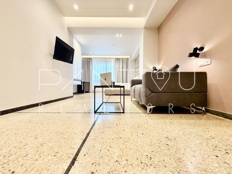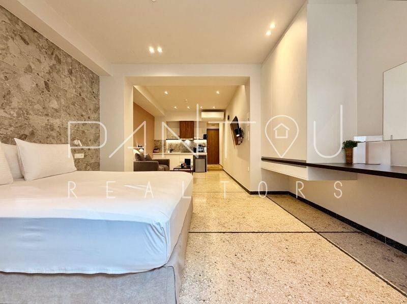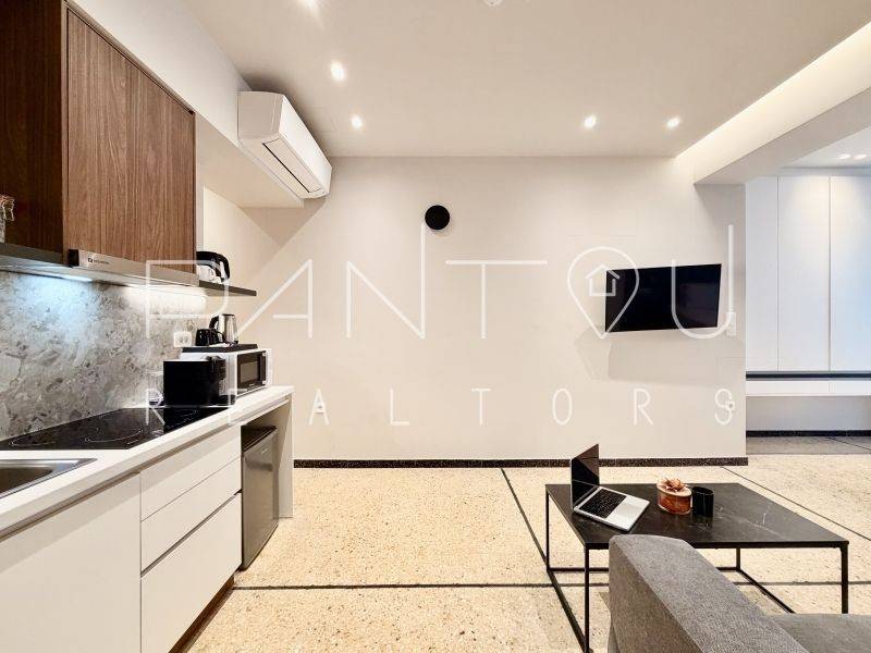 On the 3rd floor of an authentic industrial building from 1988 — just steps from Plateia Koumoundourou and the pulse of Psyrri — this loft-studio feels more like a boutique hotel suite than a conventional apartment.