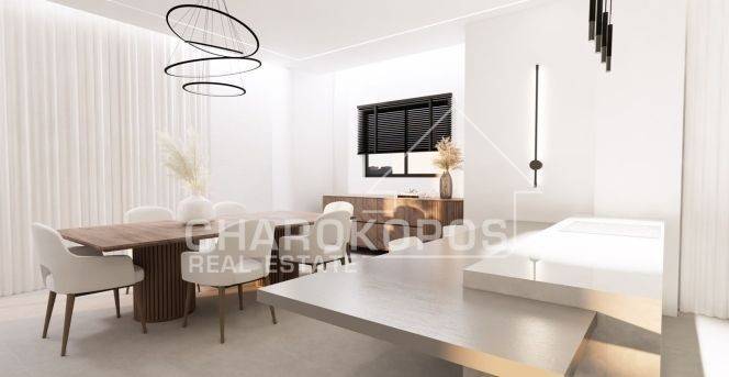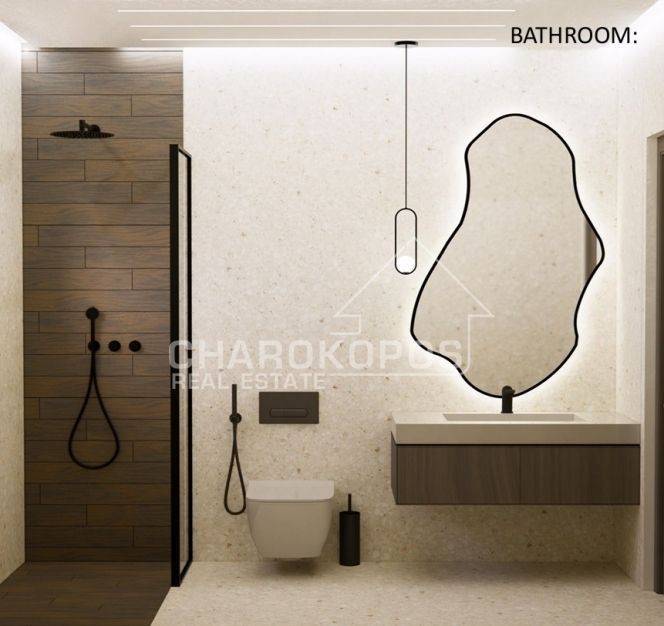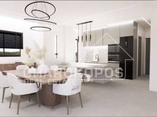 Under construction, bright apartment on the 3rd floor of 100.50 sq m, with open-plan reception areas with kitchen (can be closed), 2 bedrooms (possibility of a 3rd), 2 bathrooms and 33 sq m verandas. Ground floor parking space and 18 sq m basement storage. Luxurious construction. It has aluminum frames, electric roller shutters, screens, heat pump (cooling - heating), security door, fireplace, solar, electric car charging and disabled access. Delivery summer 2027. EXCLUSIVENESS. The point on the map does not indicate the exact location of the property, but close to it. The brokerage fee in the event of a purchase and sale amounts to 2% of the total actual value of the main contract plus the legal VAT (24%). It is necessary to present your ID and Tax ID number for the property listing. On our website: https://www.charokopos.gr/ you can find more information and properties.