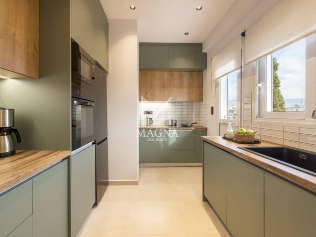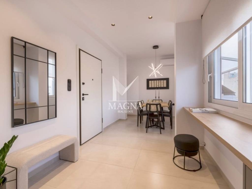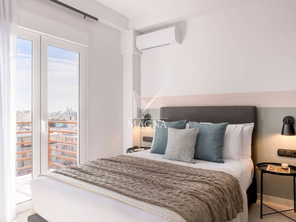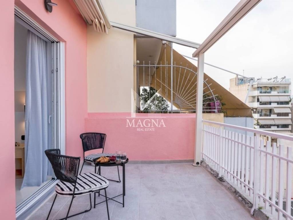 Fantastic apartment with stunning views of the Acropolis, 99.5 sq m, 5th floor in Athens, fully renovated, equipped and furnished. It consists of two peaceful bedrooms, two elegant bathrooms, spacious living room with fireplace, fully equipped kitchen and large balcony with wonderful views. Excellent investment proposal, already operating on Airbnb