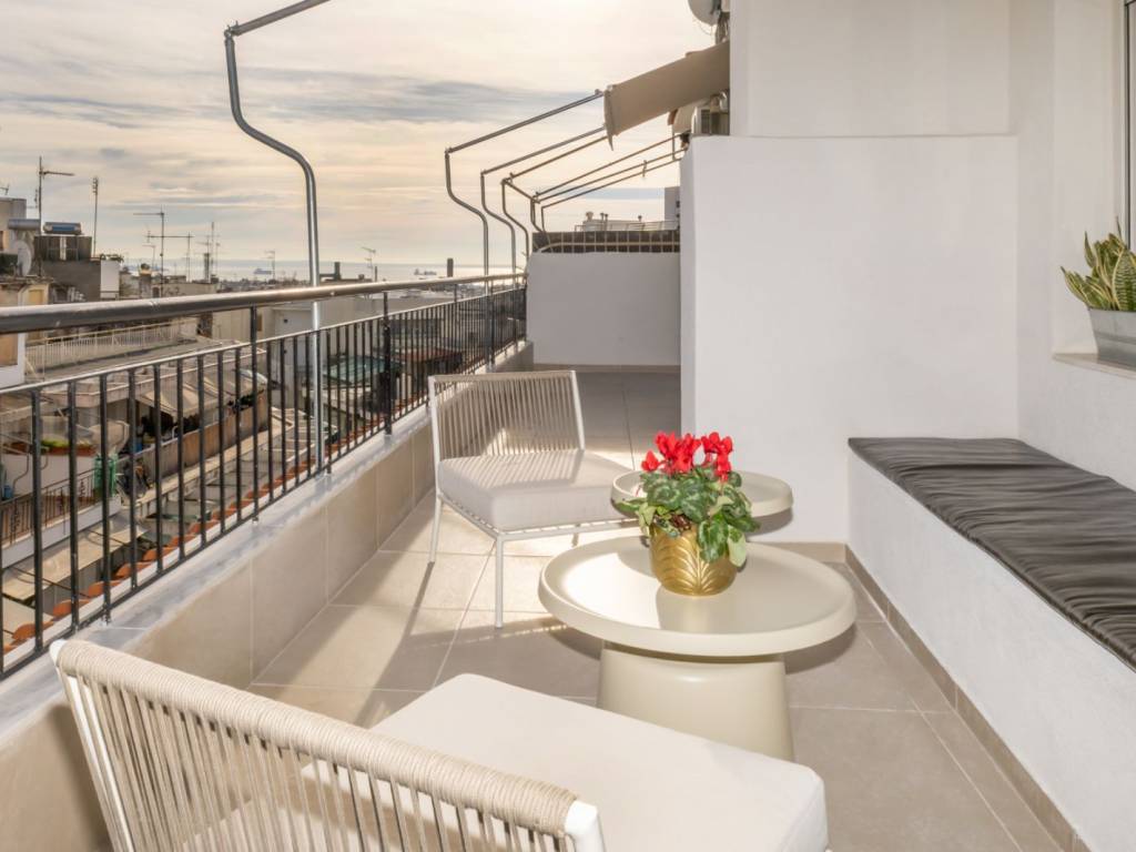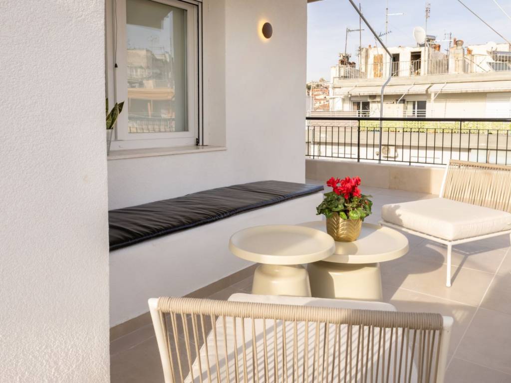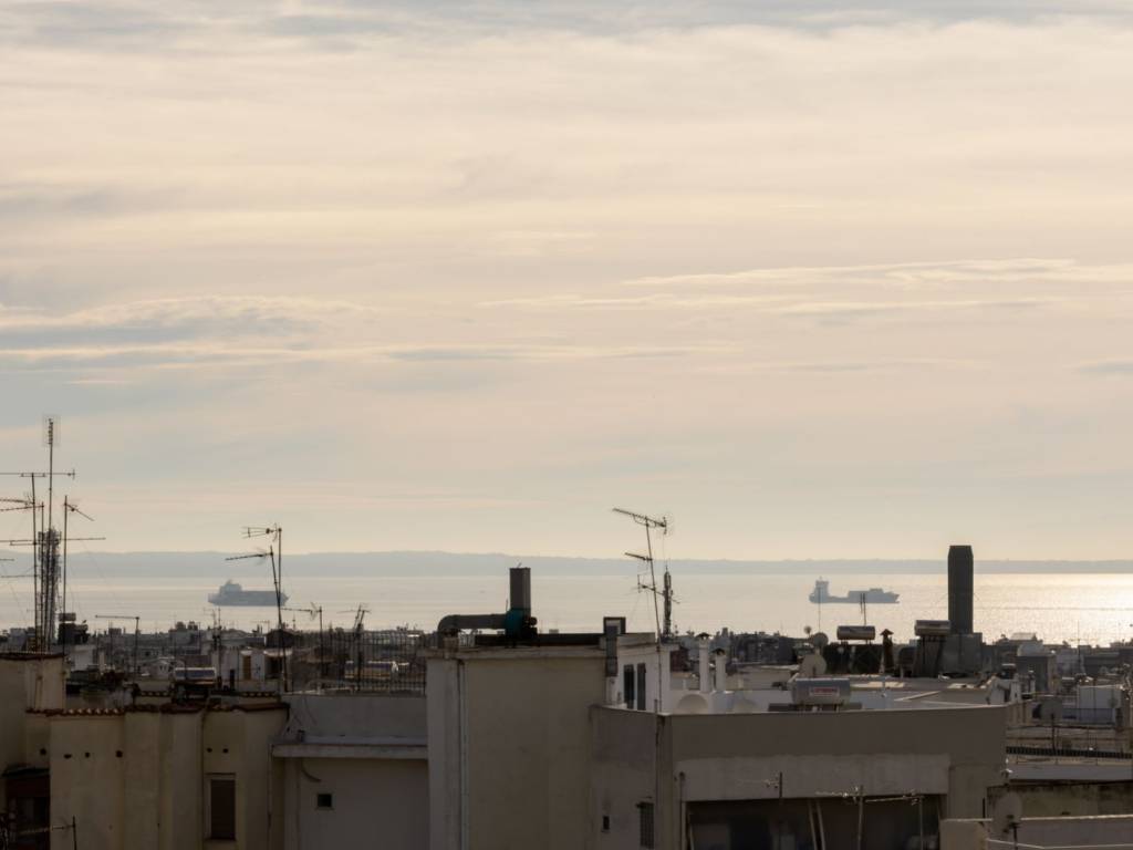 Excellent penthouse for sale next to Agios Dimitrios and the Ministry of Macedonia Thrace, renovated in 2026, perimeter insulation, large balcony, awnings, view to the Thermaikos Gulf and the upper city. Internally, two large rooms, living room, kitchen and bathroom. Underfloor heating with natural gas. Furnished with all electrical appliances and three air conditioners.