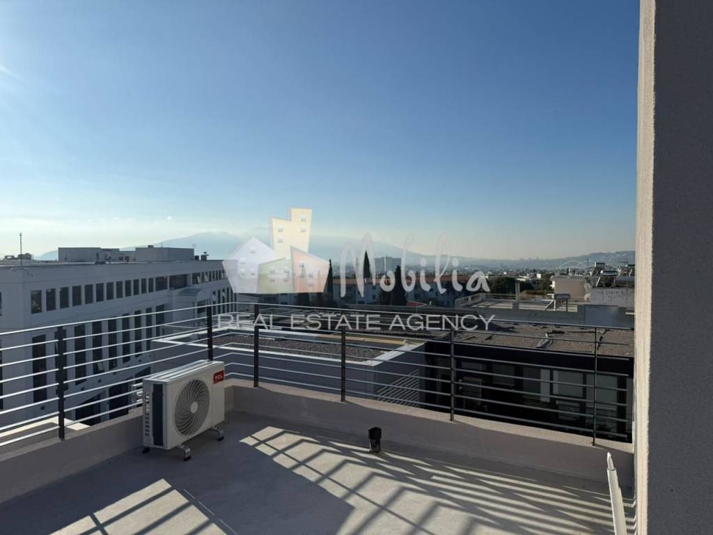 Newly built 84 sq.m. penthouse apartment for rent in Marousi. Located on the 5th floor with a 79 sq.m. private terrace. Easy access to the center of Marousi, Kifissia, and the Marousi and KAT train stations. The apartment is in excellent condition, with a very good layout, electrical appliances, air conditioning, and all amenities. It has a living room with an energy-efficient fireplace, a large balcony with a beautiful view, an open kitchen, a bathroom, a WC, and 2 bedrooms connected by a veranda. Independent heating, 2 parking spaces in an underground garage and a 15 sq.m. storage room. The terrace on the 6th floor offers a fantastic panoramic view. Mobilia Real Estate, Contact Number: 2107563200, email: info@mobilia.gr, website: https://www.mobilia.gr