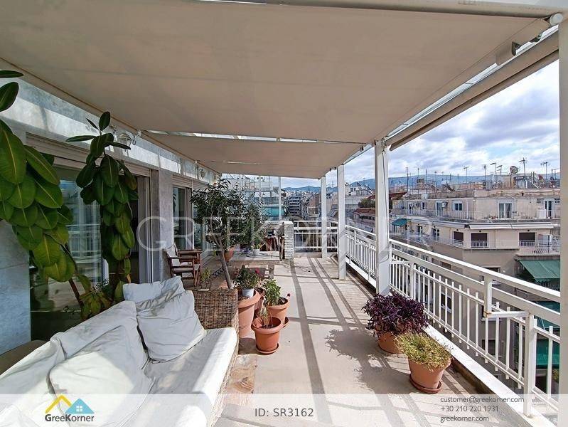 Platia Amerikis - Floor Apartment 265sqm unfurnished, bedrooms 2, master bedroom, levels 2, 6th (255sqm) - rooftop room (10sqm), penthouse, renovated, year built 1976, renovation year 2008, energy class C, living room, kitchen, 2 bathrooms, heating type: autonomous (natural gas), air condition, dual aspect apartment, luminous, unobstructed view view, frontage, drop ceiling, storage space, solar heater, boiler, fireplace, large balconies, tents, elevator, loft storage, private terrace, built in appliances, aluminum frames, double glazed windows, wood & tile floors, separate kitchen, office, three phase electricity, secure door, alarm, surveillance cameras, video doorbell, internet, residential zone, access from asphalt, close to metro/train (up to 500m), close to super market (up to 5m), close to market (up to 5m), close to entertainment (up to 20m), close to bus stop (up to 5m), close to banks (up to 5m).