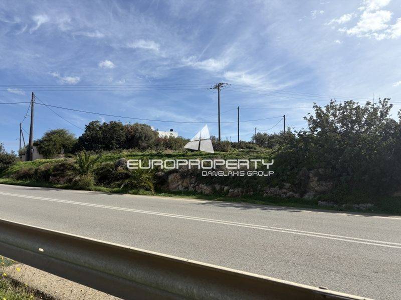 Plot of land on the National Road, a few kilometers before Hersonissos, with a large frontage on the service road of the Heraklion–Hersonissos National Road. It offers excellent visibility and is suitable for holiday villas, sports facilities, or the development of logistics spaces / Stations for cars, buses, etc. The property has access both from a rural road and from the National Road via its parallel service road. It enjoys unobstructed views and allows easy construction, as the land is not heavily rocky.