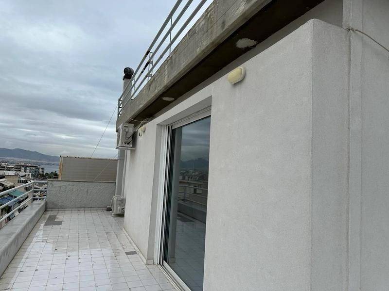 Piraeus, Freattyda - Maisonette 80sqm bedrooms 2, levels 2, 6th - 7th, renovated, year built 1983, renovation year 2024, energy class D, living room, kitchen, bathroom, wc, heating type: central (oil), air condition, quiet, dual aspect apartment, luminous, corner, panoramic view, frontage, painted, storage space, solar heater, external thermal insulation, balconies, large balconies, elevator, loft storage, aluminum frames, double glazed windows, door screen, wood & tile floors, separate kitchen, three phase electricity, secure door, residential zone.