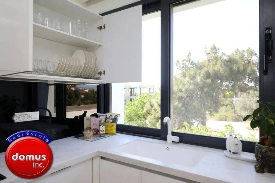 Elliniko, Kato Elliniko, Apartment For Rent, 141 sq.m., Property Status: Amazing, Floor: 1rst, 1 Level(s), 2 Bedrooms (2 Master), 1 Kitchen(s), 2 Bathroom(s), 1 WC, Heating: Autonomous - Petrol, Building Year: 2027, Energy Certificate: A+, Floor type: Wooden floors, Type of door frames: Aluminum, Features: Elevator, Security door, Security alarm, CCTV, Storage room, Fireplace, Satellite Receiver, Electric Appliances, Double Glazed Windows, Window Screens, Balconies, Luxury, Roadside, Bright, AirConditioning, Solar water system, Boiler, Trees, Swimming pool, Back yard (Garden), Renovated, Price: 4.500€. Domus inc., email: gr@greekblue.gr