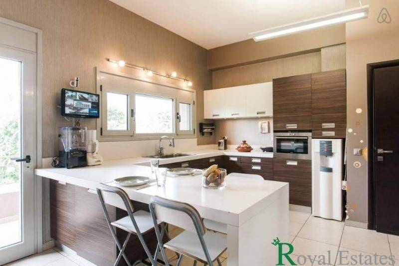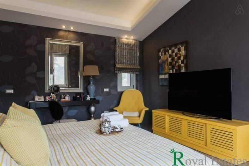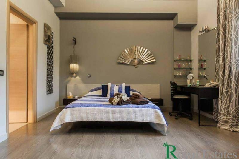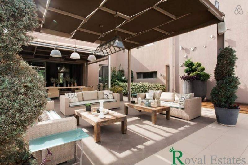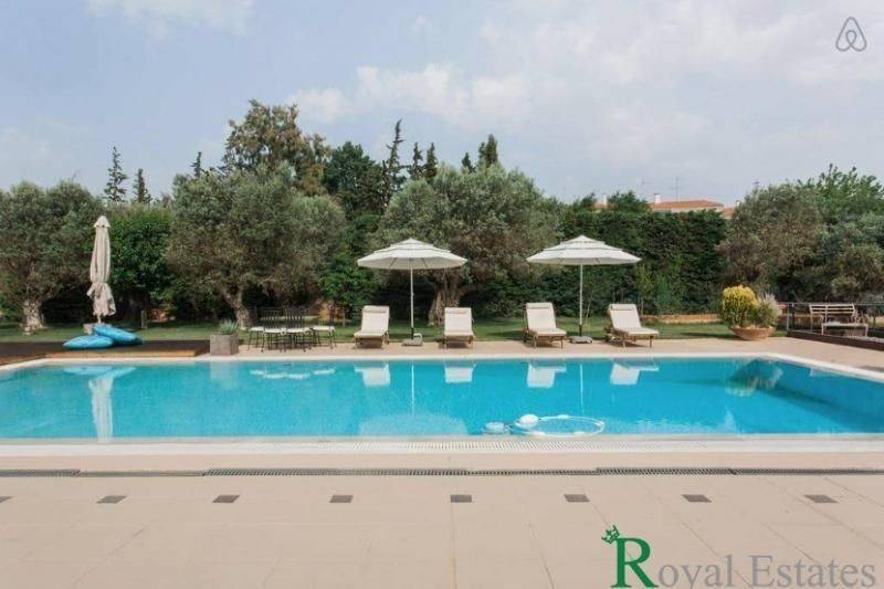 Location: Northern suburbs, Maroussi, Paradisos. Property Description: Offer for lease stunning, luxurious, detached house (villa) 890 sq.m, three levels with pool, year of construction 2010, on a plot of 5,330 sqm, fully landscaped. Interiors: the property consists of, Ground floor: Main living room with very high ceilings with two living rooms, built-in fireplace, large openings with views and access to the garden and pool, dining area for twelve people, office space with pool view, home cinema, independent large kitchen area, bathroom. 1st floor: Large master bedroom with two dressing rooms and a large bathroom with deck in the shower, a bedroom or office space. Semi-basement: Three master bedrooms (one with waking closet and bathroom), guest house with bathroom, daily living room tv room - Playroom, patio for natural light, maid's room, laundry room very large with work space, boiler room, storage. Outdoor area: Beautifully landscaped area with lawn and olive trees, unlimited space for parties and receptions, swimming pool, 2 jacuzzi, outdoor shower, wc, covered parking for four cars, security house next to the entrance with kitchenette and bedroom. Amenities and facilities: Underfloor heating with gas and autonomy per level. Cooling-heating air conditioning system, VRV type throughout the house. Heavy duty aluminum frames, double glazing, screens. Alarm, closed circuit with external cameras, external alarm with radar and rays. Elevator. Electric generator. Drilling, automatic watering. CCTV. Satellite antenna. Internet, wi-fi. Easy access to Attiki Odos and the suburban road.