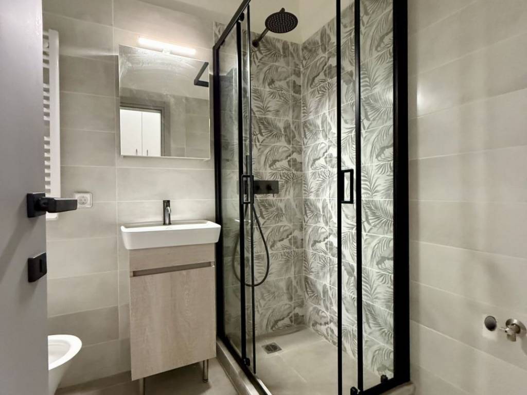 Center of Athens, Exarchia - Neapoli: Renovated Studio for rent 35 sq.m. facade on the ground floor. It consists of 1 bedroom, 1 kitchen and a bathroom. It was built in 1967 and has aluminum frames, air conditioning, energy class D, .. Property Code: #1528438 It is an elevated studio apartment with a separate entrance, completely renovated in 2025, electrical / plumbing / bathroom / kitchen / floors / aluminum frame / 1 air conditioner will be included. It consists of 1 hall with extra space either for an office or for a bed or storage space, 1 spacious room, bathroom / kitchen. NO YARD/BALCONY PETS SMALL in very good location close to transport markets and shops...