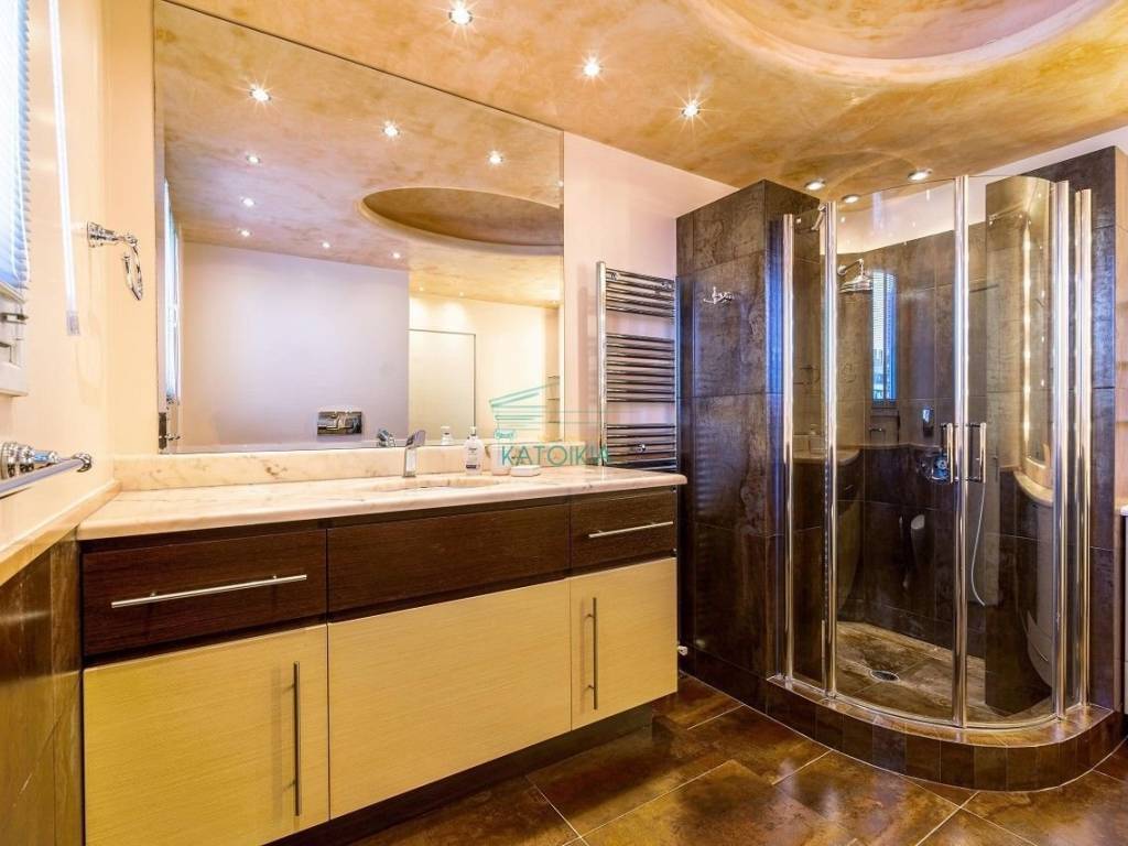 Αcross from the American Embassy on Av. Vasilissis Sofias, an ultra-luxurious furnished penthouse apartment of 174 sqm, 5th floor, fully renovated with an unlimited view of Lycabettus, the Concert Hall and Eleftherias Park, is offered for rent. The apartment consists of a large reception area and an unobstructed view from inside the living room. Terrace with spectacular views, two large bedrooms one of them en suite, with a super modern master bathroom and a walk-in closet room, which can be converted into a third room or guest house and a second bathroom equally luxurious and elegant with a jacuzzi. The property has a large modern kitchen that contact with the dining room, fully equipped with all electrical appliances and a sitting area. The apartment also has a separate data room that can also be used as a warehouse, high-tech air conditioners, oak floors, double glazing, electric awnings, alarm, central and auxiliary service security doors and autonomous individual heating, code 57878