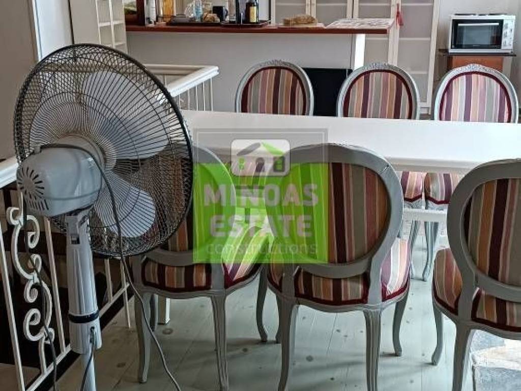 Nea Kydonia, Agioi Apostoli: For rent a very beautiful and special Studio 128 sq.m. on the ground floor with autonomous oil heating. It consists of a single room with a difference in level, internal storage and 2 bathrooms. It is fully furnished, with electrical appliances (oven, fridge), built in 2001, painted and has a nice view, security door, stone & wood floors, screens, solar water heater. It has a comfortable yard with trees and plants and is very close to the sea, schools, pharmacies, supermarkets. It is ideal for employees. (available with or without furniture) Price €650 (long term rental) | Property Code: #E-14978