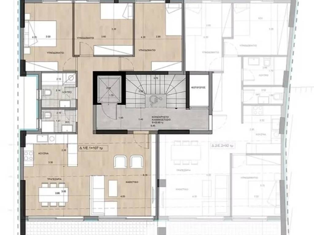 KALLITHEA apartment for sale 107 sq.m. on 4th floor. It consists of 3 bedrooms, a living room, a kitchen-dining room, a bathroom and a wc. It has parking, basement with storage rooms and parking, wooden floors, thermally insulated frames, window screens, energy-efficient glazing, external thermal insulation shell, Autonomous heating, alarm standby & power supply for electric vehicle charger. Luxury Construction - PRICE: €395.000