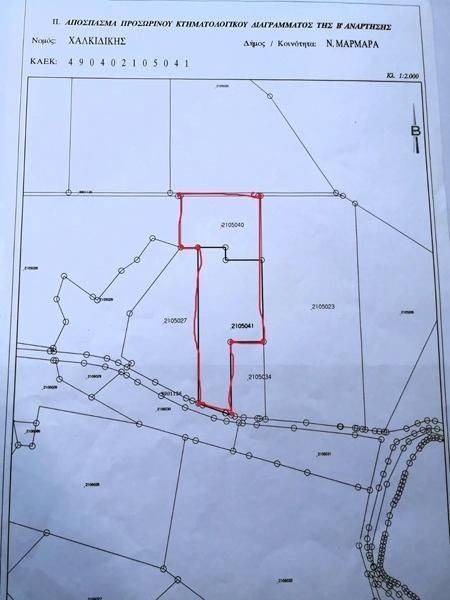 The location of this particular parcel is excellent in terms of the natural environment. The nearest beach is less than 150 meters away, successive bays with crystal clear waters cover the entire coastal route. The parcel is adjacent to the asphalted old provincial road N.Marmara-Toroni for 32 meters. The upper side of the parcel has access via a 200 m long rural road from the connection with the main road. The parcel consists of two contiguous plots (each with a separate contract), one of 4,040 m² and the other of 6,495 m². A minimum of 418 m² can be built, and due to the sloping terrain, more can be added. NOTE: 1896 m2 can be built for tourist accommodation. Price: €535.000
