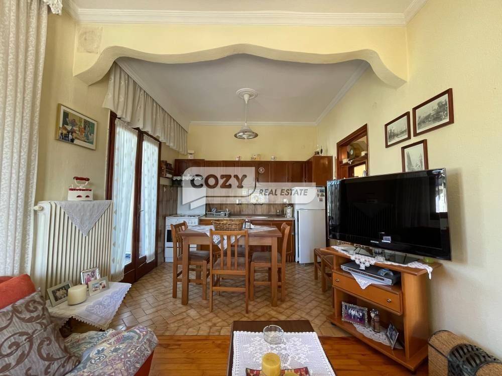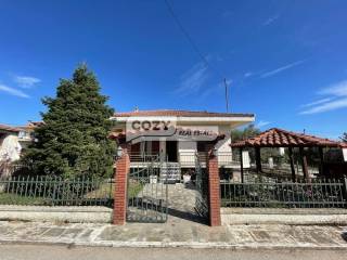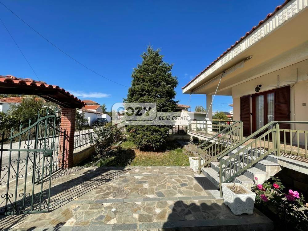 For sale is a bright and dual-aspect detached house of 105 sq.m., built on a 555 sq.m. plot, ideal for families or working professionals seeking comfort and quality of life. The property consists of two bedrooms, an open-plan living room with kitchen, a separate living room, and a bathroom. It features individual pellet heating, tiled floors, insect screens, and a solar water heater, offering functionality and energy efficiency. The house was constructed in 1981 and includes a garden as well as two parking spaces. Additionally, there is a 67 sq.m. auxiliary building currently used as a storage area, which can be upgraded and converted into a main living space, providing significant potential for expansion. Pets are allowed. This is an excellent choice for a permanent residence in a quiet environment with generous indoor and outdoor areas.
