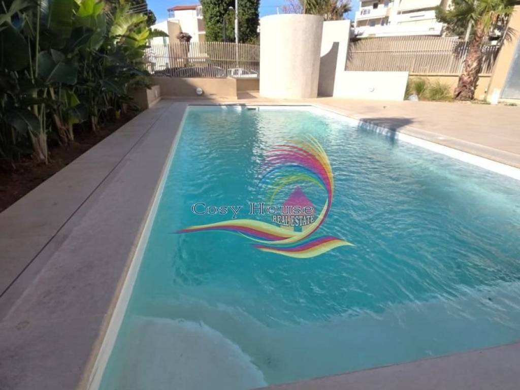 Independent apartment, fully renovated in 2025, featuring an outdoor area with a private courtyard, BBQ, built-in outdoor shower next to the apartment’s private swimming pool, and a large on-site parking space that can accommodate two vehicles in a row. The interior consists of a living room with modern furnishings, a hallway where the kitchen is located, a guest W/C, and two master bedrooms. One bedroom features a shower, while the second offers a deluxe deep bathtub. The design and renovation aesthetic evoke a Greek island style, while the beautifully landscaped exterior fencing of the property, with lush plants, creates an international, resort-like atmosphere. All utility bills are included in the price.