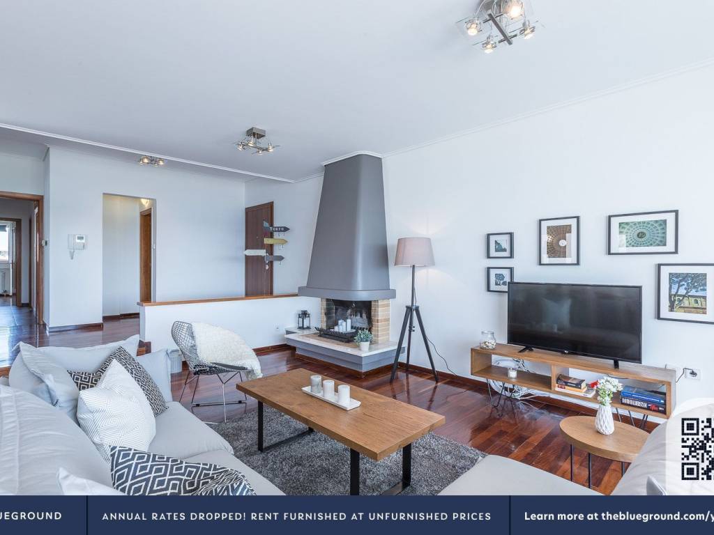 As with any Blueground apartment, you’ll find a thoughtfully designed space complete with beautiful furnitureand a fully equipped kitchenin this three bedroom property. And, thanks to our superior quality mattresses, luxury linens, and towels, you can relax knowing you’ll always feel comfortably at home. When you’re ready for some fun, you can take in the Athens vibes or bring the entertainment to you with the premium wireless speaker or smart TV.