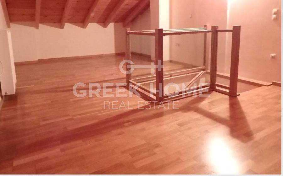 Glyka Nera, Fouresi - Full floor Maisonette 164sqm bedrooms 3, levels 3, raised ground floor - attic - 1st, excellent condition, year built 2015, energy class B, living room, hall, kitchen, bathroom, wc, heating type: autonomous (oil), air condition, parking covered, quiet, dual aspect apartment, luminous, painted, drop ceiling, electric roller shutters, storage space, solar heater, fireplace, balconies, tents, synthetic frames, double glazed windows, door screen, wood & tile floors, office, without common charges, secure door, alarm, surveillance cameras, video doorbell, luxurious, internal staircase, barbeque, playroom, cloakroom.