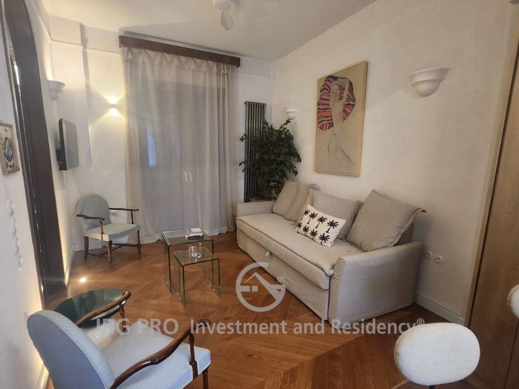 Fully and luxuriously renovated, elegant apartment measuring 47 sq.m. located in Mets. It consists of a spacious living room with open plan kitchen equipped with electrical appliances, 1 bedroom and 1 bathroom. It is located on the 1st floor and it features autonomous heating with natural gas, double glazing with aluminum, air conditioning and security door. It comes fully furnished. It is situated in a very beautiful spot, next to transportation, the market and restaurants. IRG PRO INVESTMENT AND RESIDENCY, contact phone: 2103639934, email: info@irgpro.com, website: www.irgpro.com