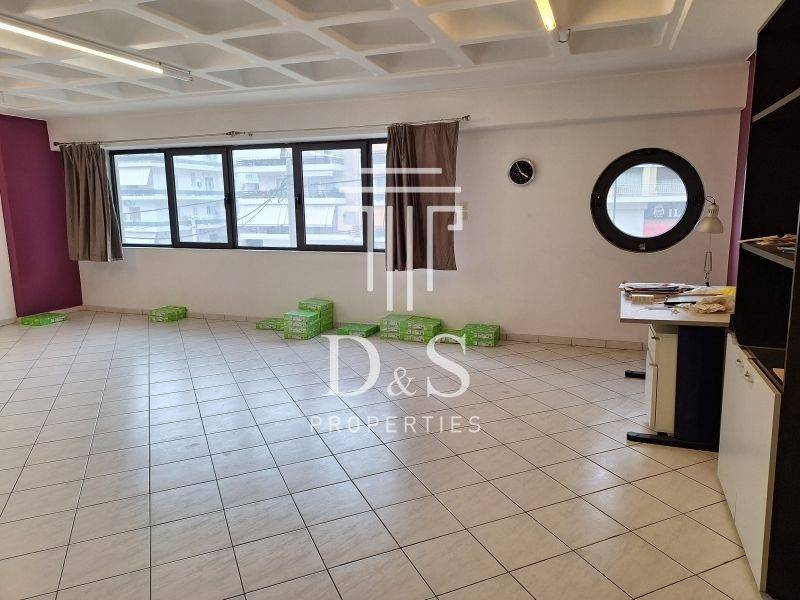 Office for rent with a total area of 85.76 sq.m., located on the 1st floor, front-facing, dual-aspect and very bright, in very good condition. It consists of an open-plan space in a Gamma (Γ) shape and includes one WC located in a shared area outside the office, intended for exclusive use.Ceiling height 2.8 meters, air conditioning, aluminum frames with double glazing, security door, elevator, and three-phase electricity. It is located on a very central street in Polygyono.
