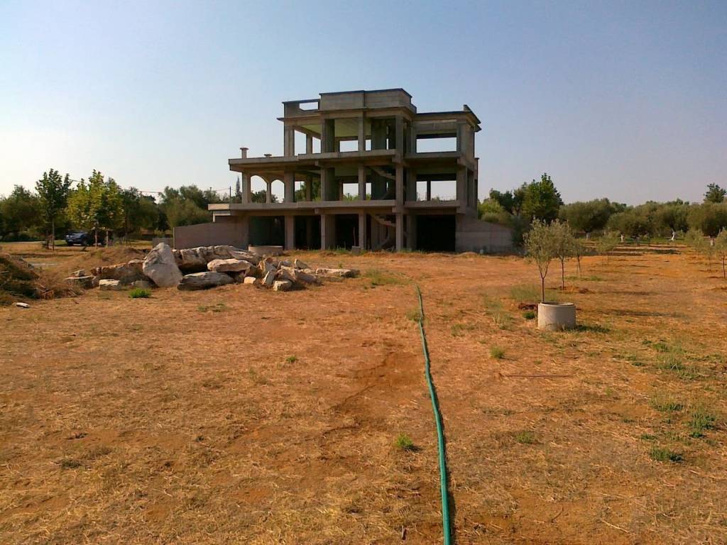 For Sale: 5,848 sq.m. Plot with Building – Platy Messinias (Arfaras Municipality) An exceptional plot of land with a total area of 5,848 sq.m. is for sale in Platy, Messinia, within the Municipality of Arfaras, featuring a building under construction (concrete stage) with a total surface of 246 sq.m. (construction year 2009). This property is an ideal choice for a family seeking a spacious holiday home or permanent residence in a peaceful, green area of Messinia. Location 7 minutes’ drive from Kalamata 15 minutes’ drive from the sea Plot Features Total area: 5,848 sq.m. Dimensions: frontage 79 m x 68 m Perimeter concrete fence (330 m) Landscaping / planting includes: 80 Koroneiki olive trees Citrus trees Exotic plants Oleanders & cacti Water supply with automatic irrigation system Building Features Three-level detached residence at the concrete stage: Ground floor: 107.22 sq.m. Basement: 112.26 sq.m. (includes parking space) Upper level: 12.25 sq.m. (storage room & stairwell) Utilities Three-phase electricity Water connection Easy access Asking Price: €365,000 Contact: Evangelos Pipinis Tel.: +30 693 663 9140