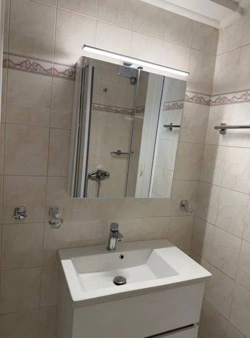 ανακαινισμένο διαμέρισμα 63 τ.μ. στον Άλιμο (Καλαμάκι), 2ου ορόφου, με 2 υπνοδωμάτια, μπάνιο και ενιαίο σαλόνι–κουζίνα. Διαθέτει αποθήκη 8 τ.μ., θέση στάθμευσης, φυσικό αέριο, 2 A/C, ηλιακό θερμοσίφωνα, συναγερμό και ηλεκτρικές τέντες. Πλήρως εξοπλισμένη κουζίνα με ηλεκτρικές συσκευές. 50 μ. από τη θάλασσα.