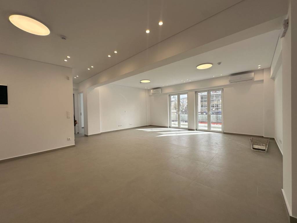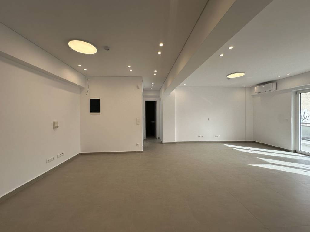 This renovated 74 sqm office is located on the 1st floor of a residential building in Agia Paraskevi, offering a quiet setting with eastern orientation and open mountain views. Originally built in 1975 and fully renovated in 2026, the property combines modern features with flexible use potential. It currently includes one bedroom, a fully equipped kitchen with new appliances, and a large open-plan space that can be reconfigured depending on residential or professional needs. Heating is provided via electric system without radiators and air conditioning units. The apartment features new aluminum window frames with double glazing, a security door, elevator access, and a private balcony. One parking space is included. Bright and functional, the property is suitable for residential use or as a professional space, offering strong adaptability in a well-established northern suburb of Athens.