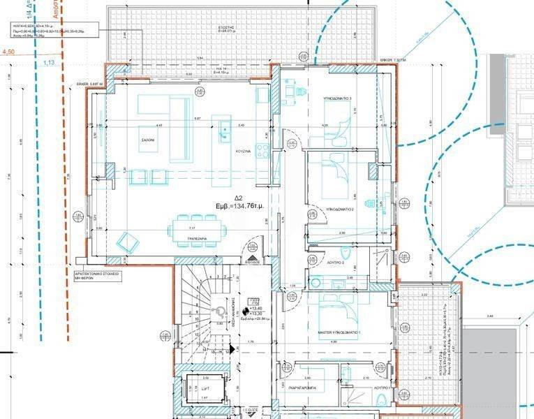 Vrilissia - Apartment 135sqm bedrooms 3, master bedroom, levels 1, 4th, penthouse, under construction, year built 2025, energy class A+, living room, hall, kitchen, 2 bathrooms, heating type: autonomous (natural gas), parking covered, quiet, dual aspect apartment, luminous, unobstructed view, frontage, storage space, external thermal insulation, balconies, large balconies, balcony 50sqm, elevator, thermal shut-off frames, double glazed windows, door screen, wood & tile floors, three phase electricity, secure door, luxurious, swimming pool, ev charger, residential zone, south-eastern orientation, close to metro/train (up to 500m).