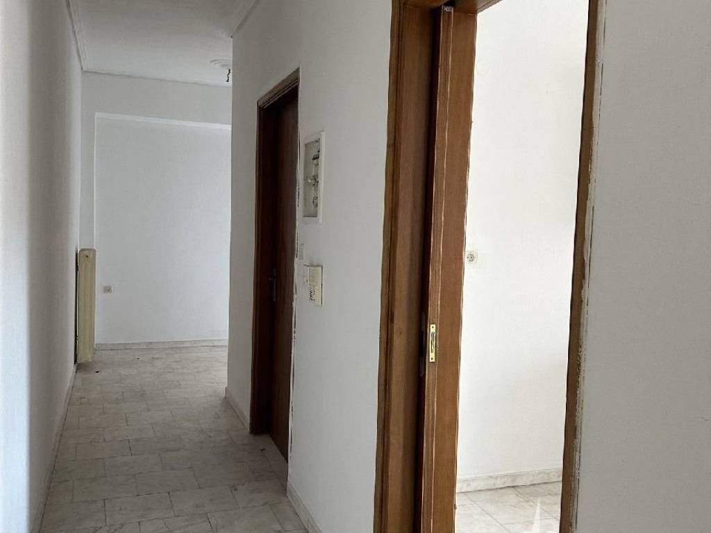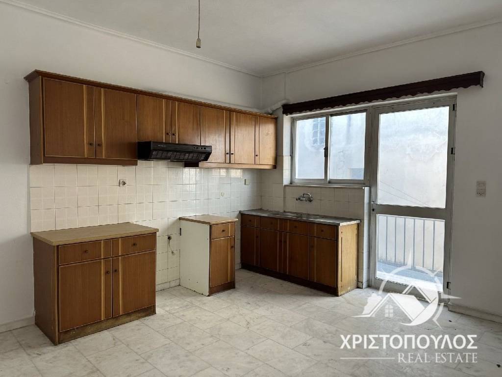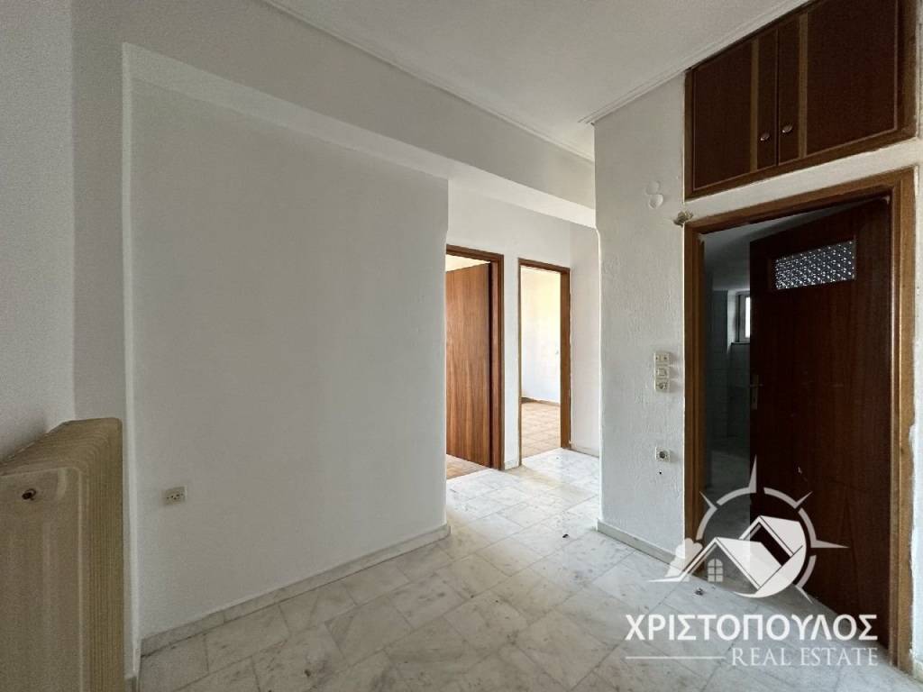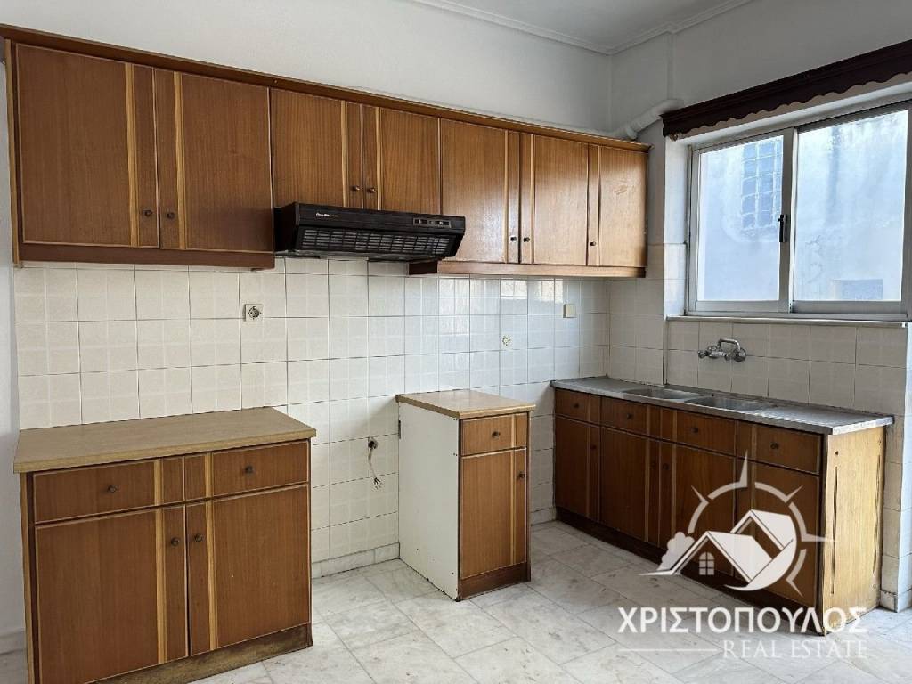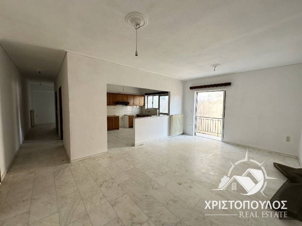 115sqm apartment in Megali Vrisi. Bright with a view and a balcony around the perimeter. It consists of 3 large bedrooms, a large living room, a kitchen with a balcony and a toilet. With autonomous oil heating. price 56.000€, code 1743