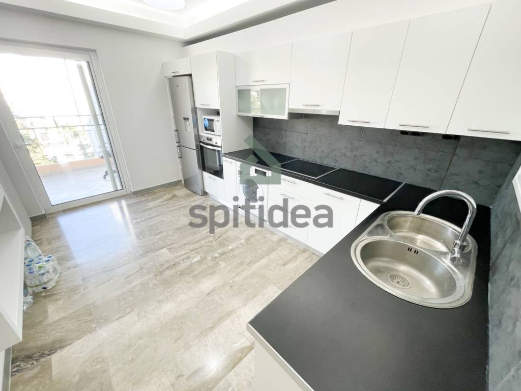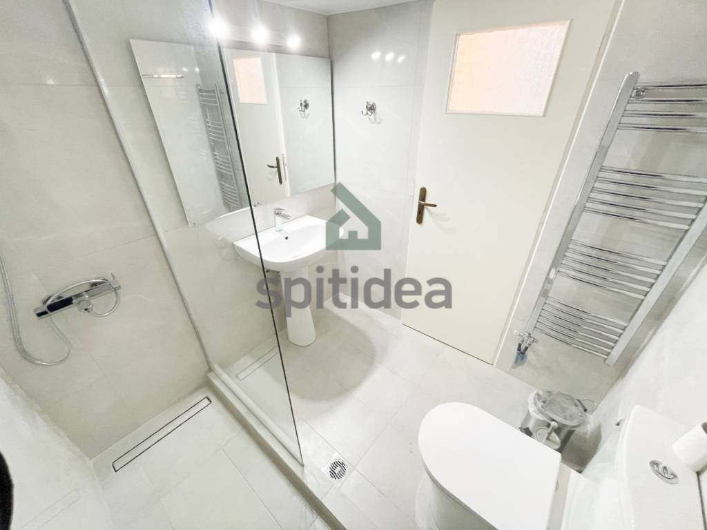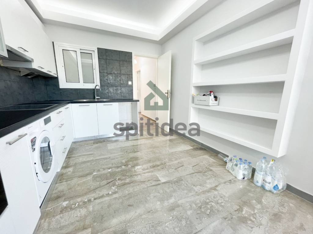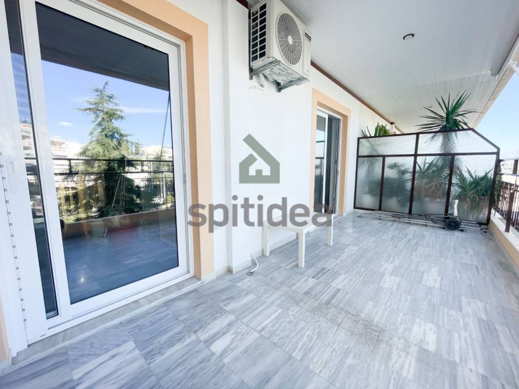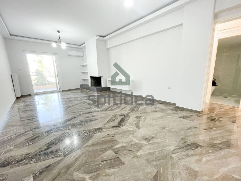 This is a fully renovated apartment with a total area of ​​90m2 on the 4th floor of a building built in 1987. It consists of a comfortable living room with fireplace, independent kitchen, 2 spacious bedrooms, bathroom and WC. It has a security door, autonomous heating with natural gas, aluminum frames with double glazing, screens, solar water heater, 3 new air conditioners, a 7m2 storage room, and a pilot parking space is also provided. Additionally, new electrical appliances are provided (stove, refrigerator, dishwasher). It is bright with large balconies with awnings on both sides which offer mountain views, while the building has a beautiful communal garden. It is located in a central location with direct access to the market, schools and transportation and overall is an excellent choice.