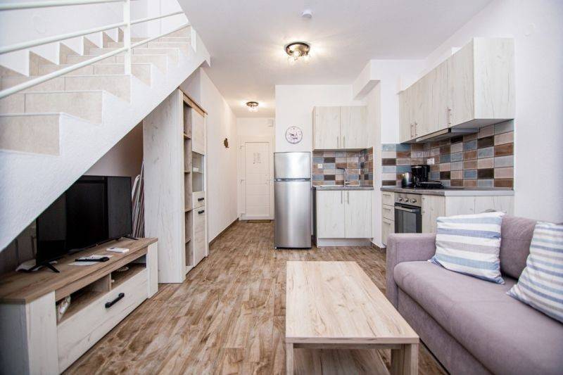 It is a newly built property in the residential complex “Nefeli” and consists of an open-plan living room with kitchen and one bathroom, while the bedroom is located in the loft with access via an internal staircase. Additionally, the balcony offers partial sea view. The apartment is situated in a privileged and quiet location, just 340 meters from the sea and local shops. It features synthetic window frames with insect screens, two air conditioning units, a solar water heater, and is fully furnished and equipped. The property has a west orientation. It is an excellent choice both for private use and as an investment in a continuously developing area.