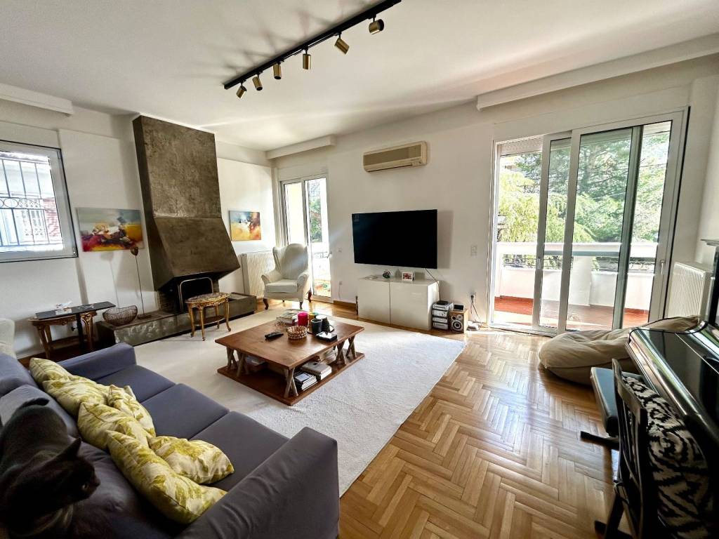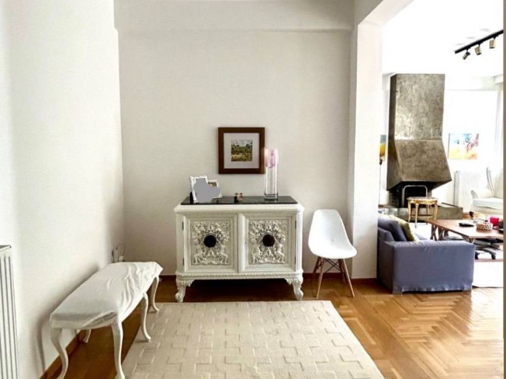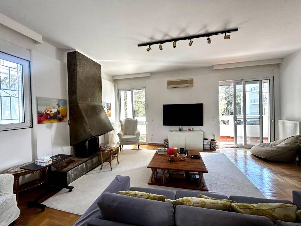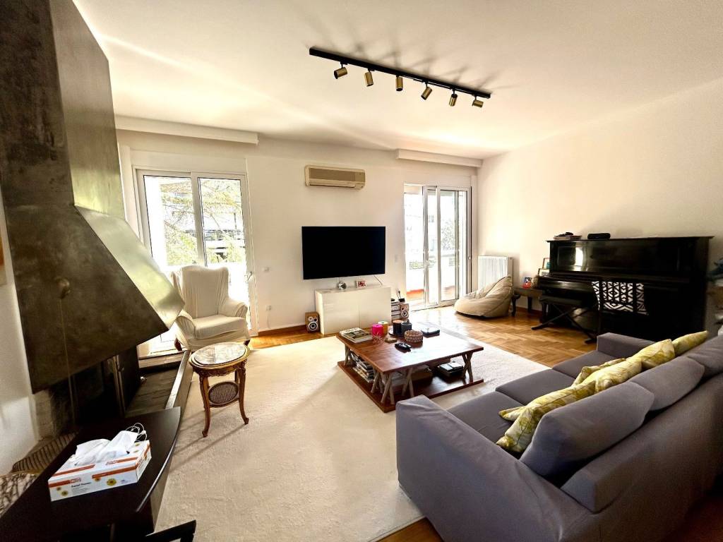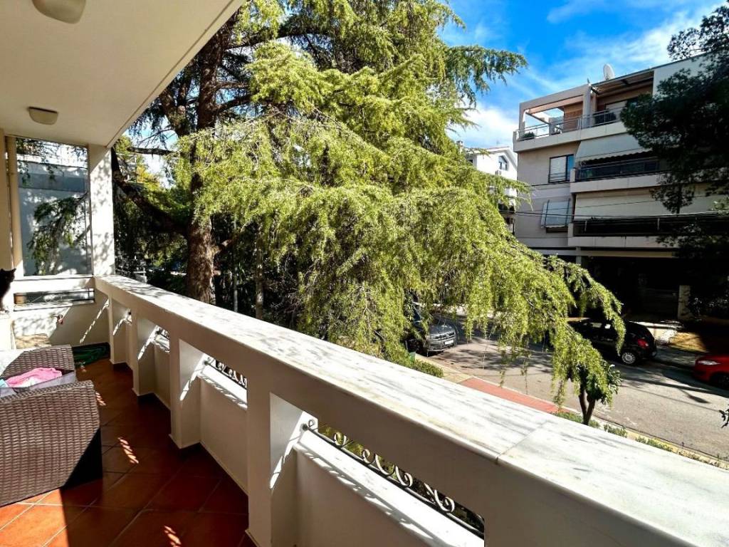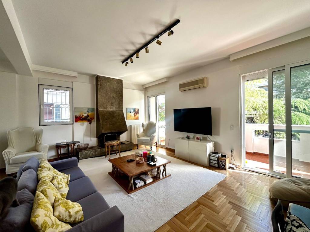 An exceptional 173 sq.m. first-floor floor-through apartment in Ano Papagou, near Agios Georgios. High ceilings and an elegant, airy layout featuring a generous reception area, dining space, and dedicated home office area. Offers 3 spacious bedrooms, 2 bathrooms, and extensive built-in wardrobes. Equipped with autonomous natural gas heating, all-day hot water, double-glazed windows with insect screens, alarm system, and three air-conditioning units. Impeccably maintained, set in a serene, green environment. Includes a 6 sq.m. storage room and possibility parking for two vehicles.